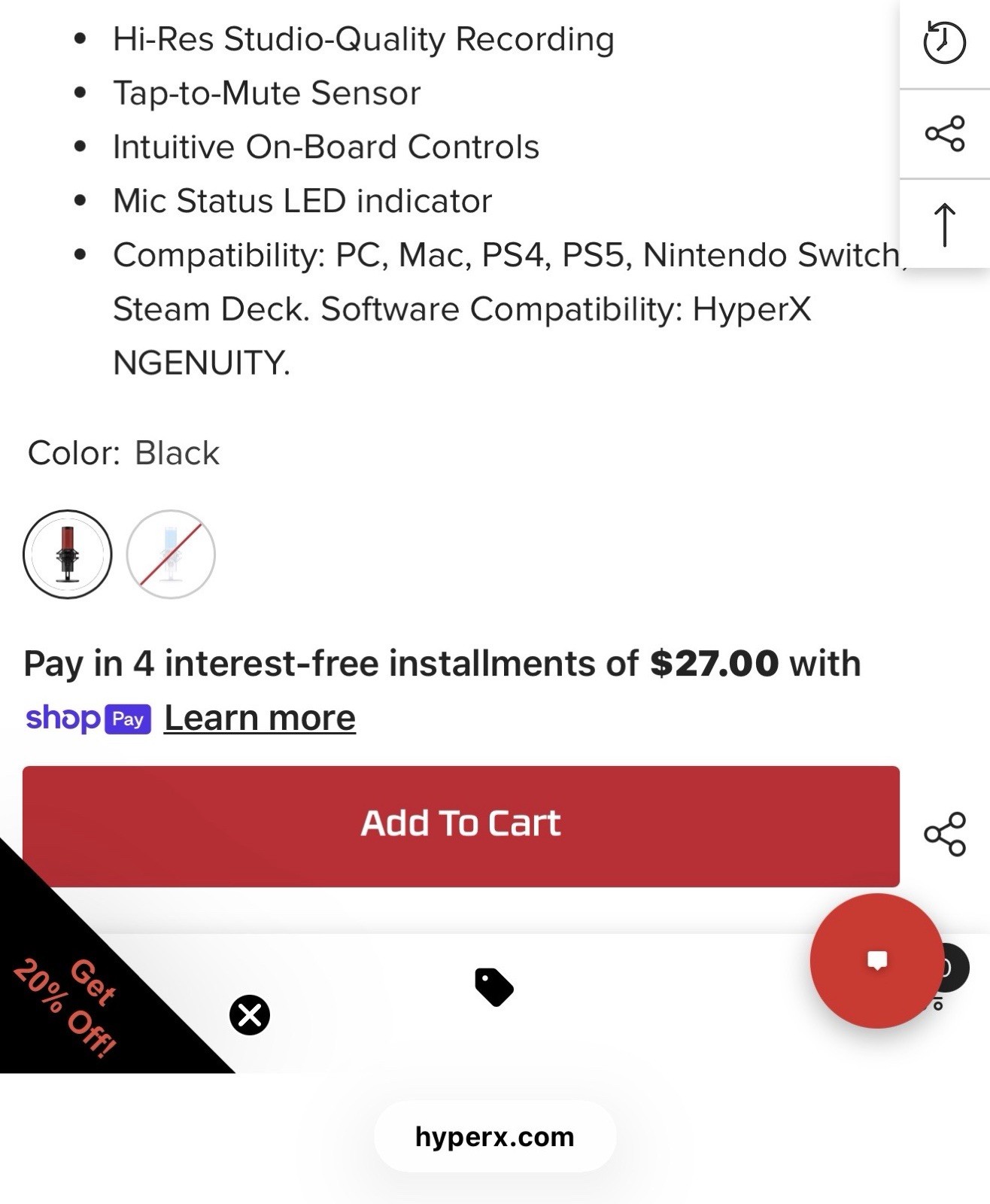 HyperX QuadCast 2 USB Condenser Microphone Black/Red Studio-Quality Tap-to-Mute