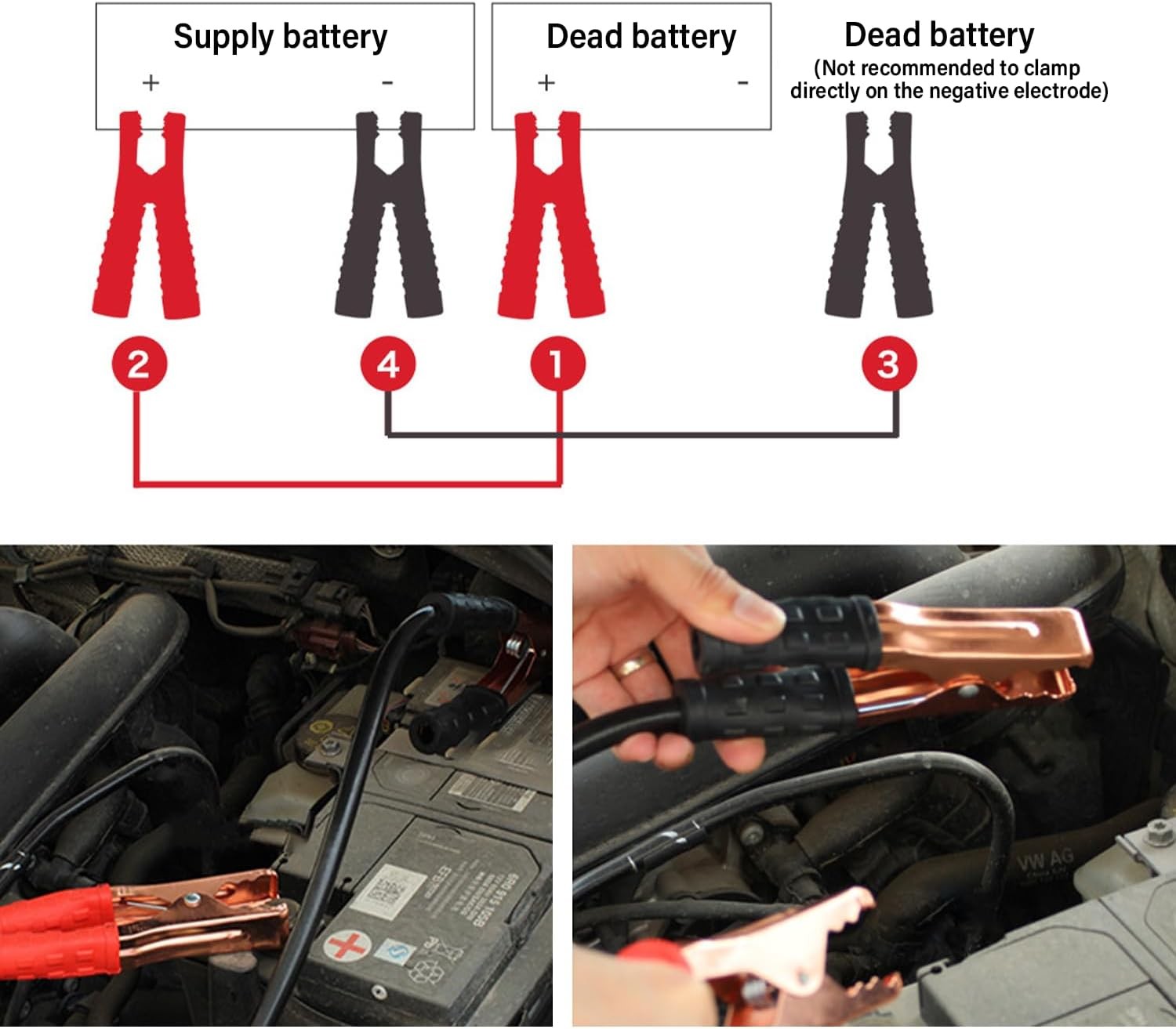 • 2PCS 1000A Battery Charger Clamps Replacement, Pure Copper Jumper Cable Clamps f