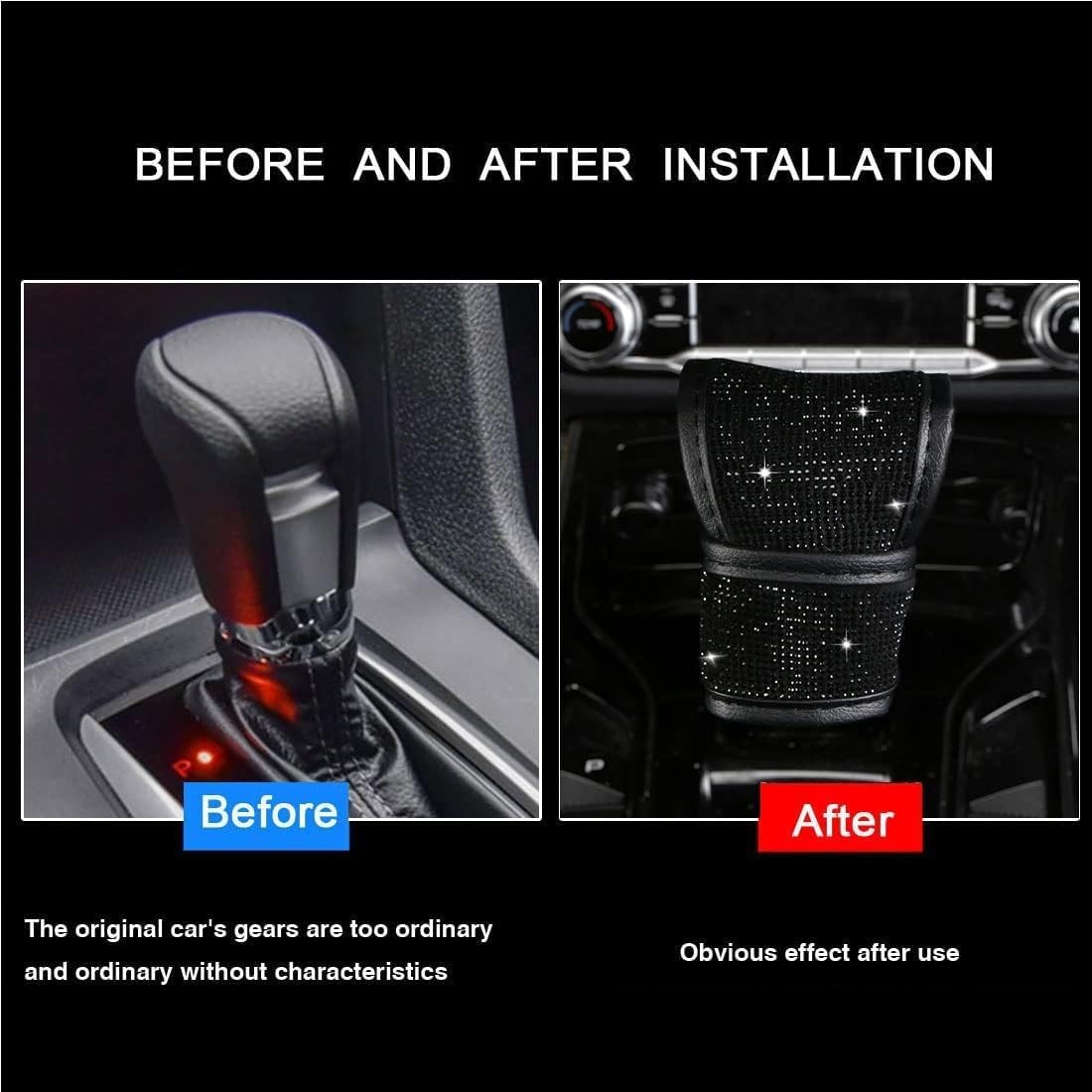 Gear Shift Knob Cover with Crystal Glitter Bling Rhinestones, Knob Gear Stick Pr