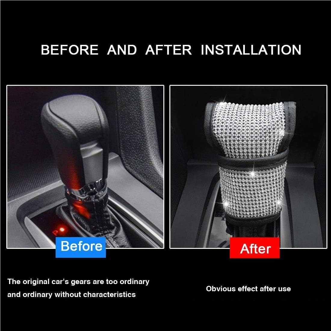 Auto Gear Shift Knob Cover with Crystal Glitter Bling Rhinestones, Car Knob Gear