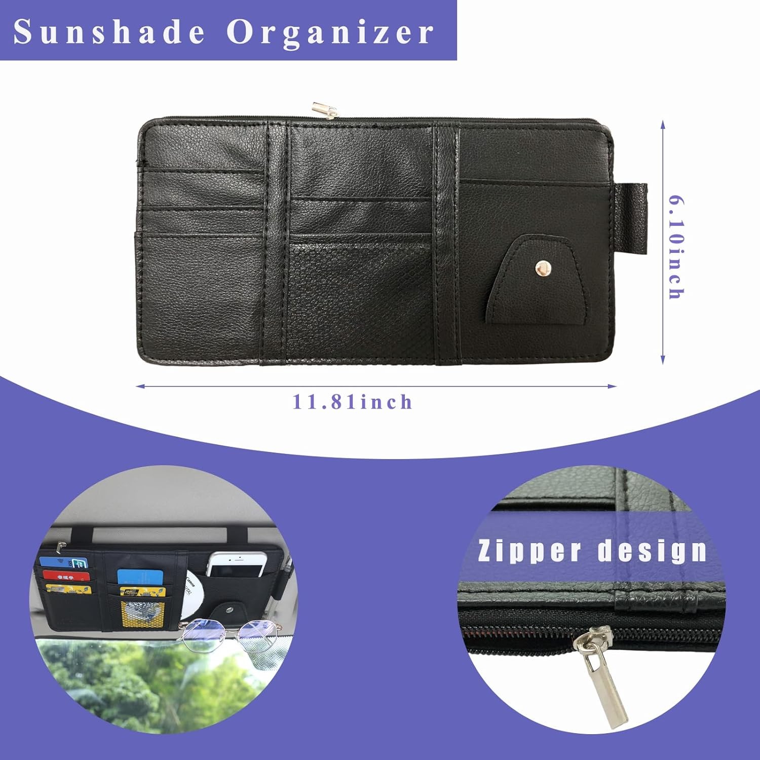Car Sun Visor Organizer, Leather Multi-Pocket Auto Visor Storage Pocket Pouch Ho
