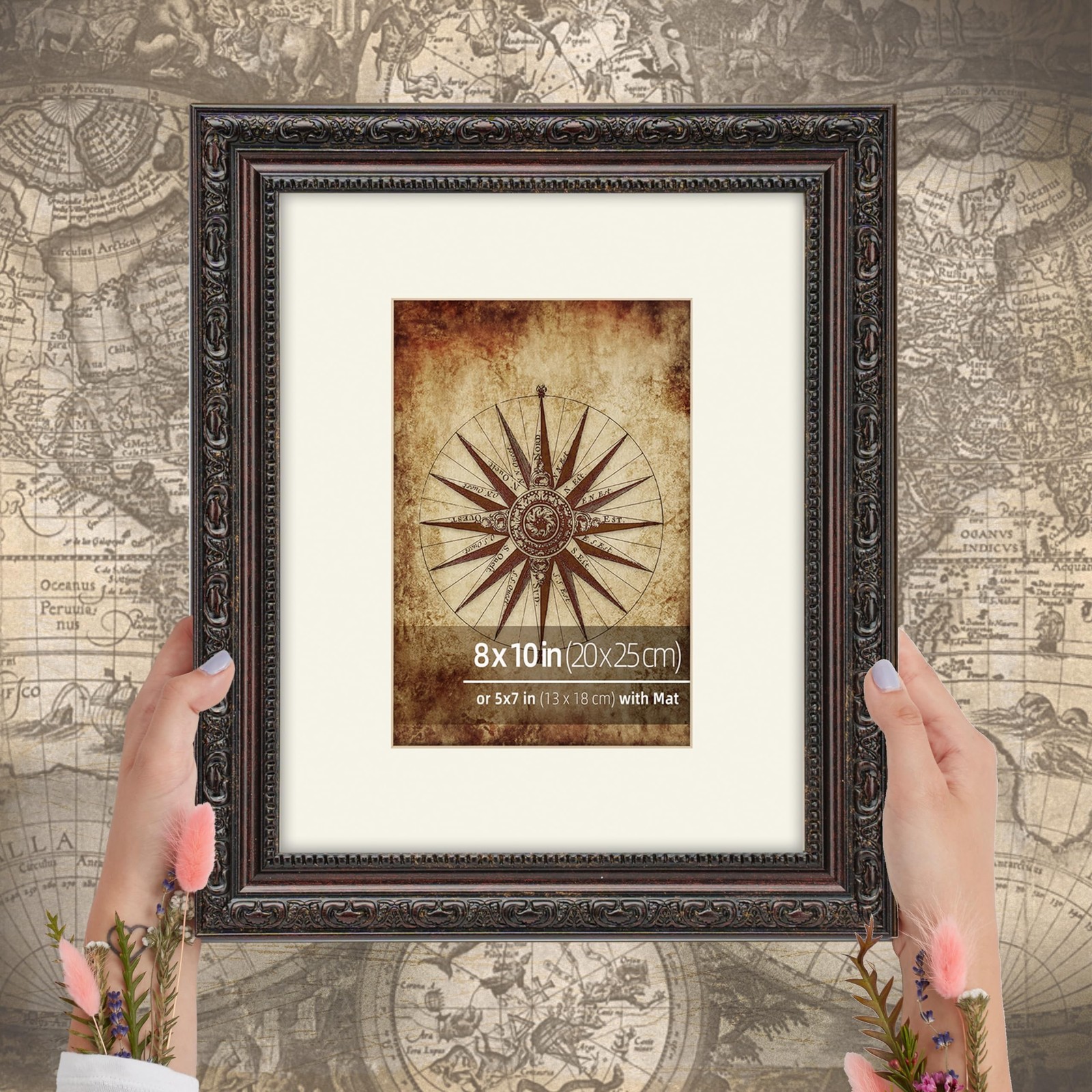 • 8x10 Vintage Dark Bronze with Scrollwork Ornate Accents Classic Picture Frame...