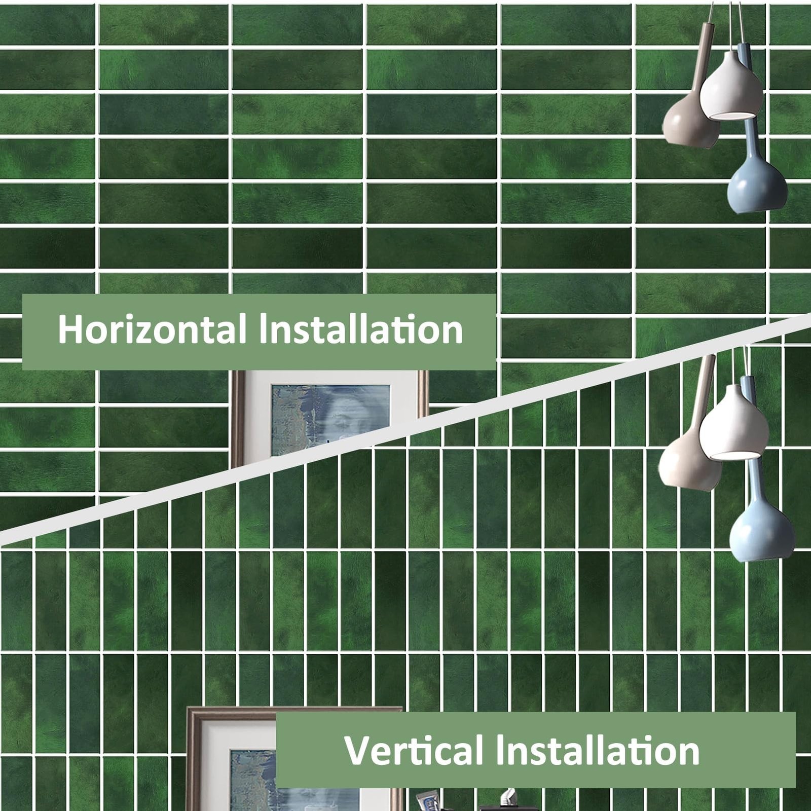 Dark Green Peel and Stick Backsplach Tile, 12x12 Back Splash Stick on Tiles...