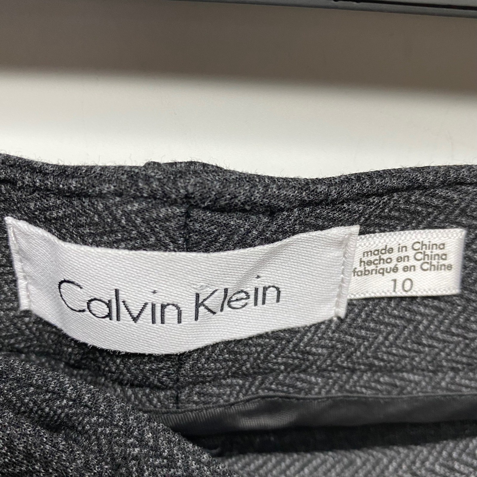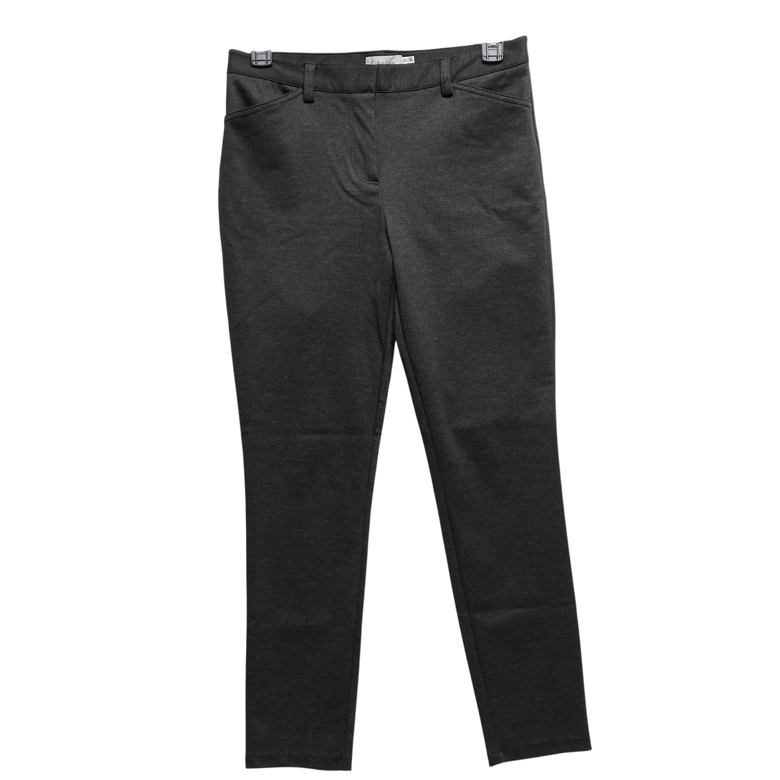 Calvin Klein Women's Black Gray Herringbone Straight Leg Dress Pants Size 10