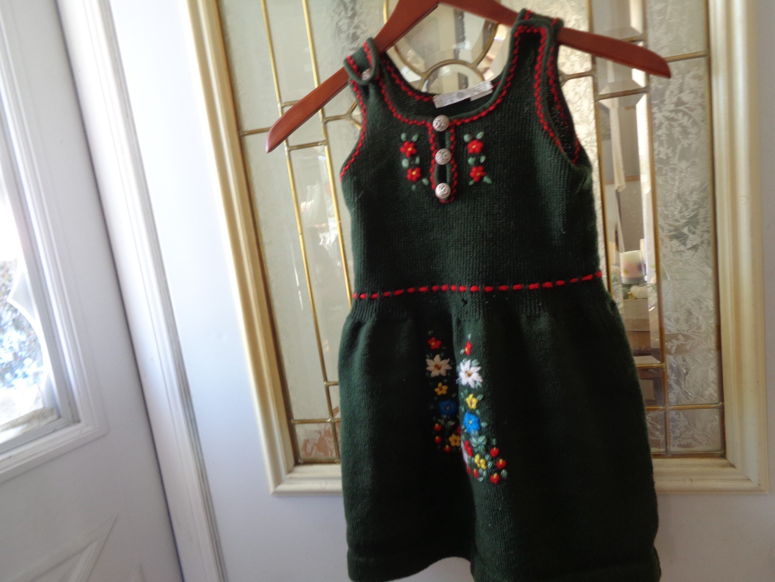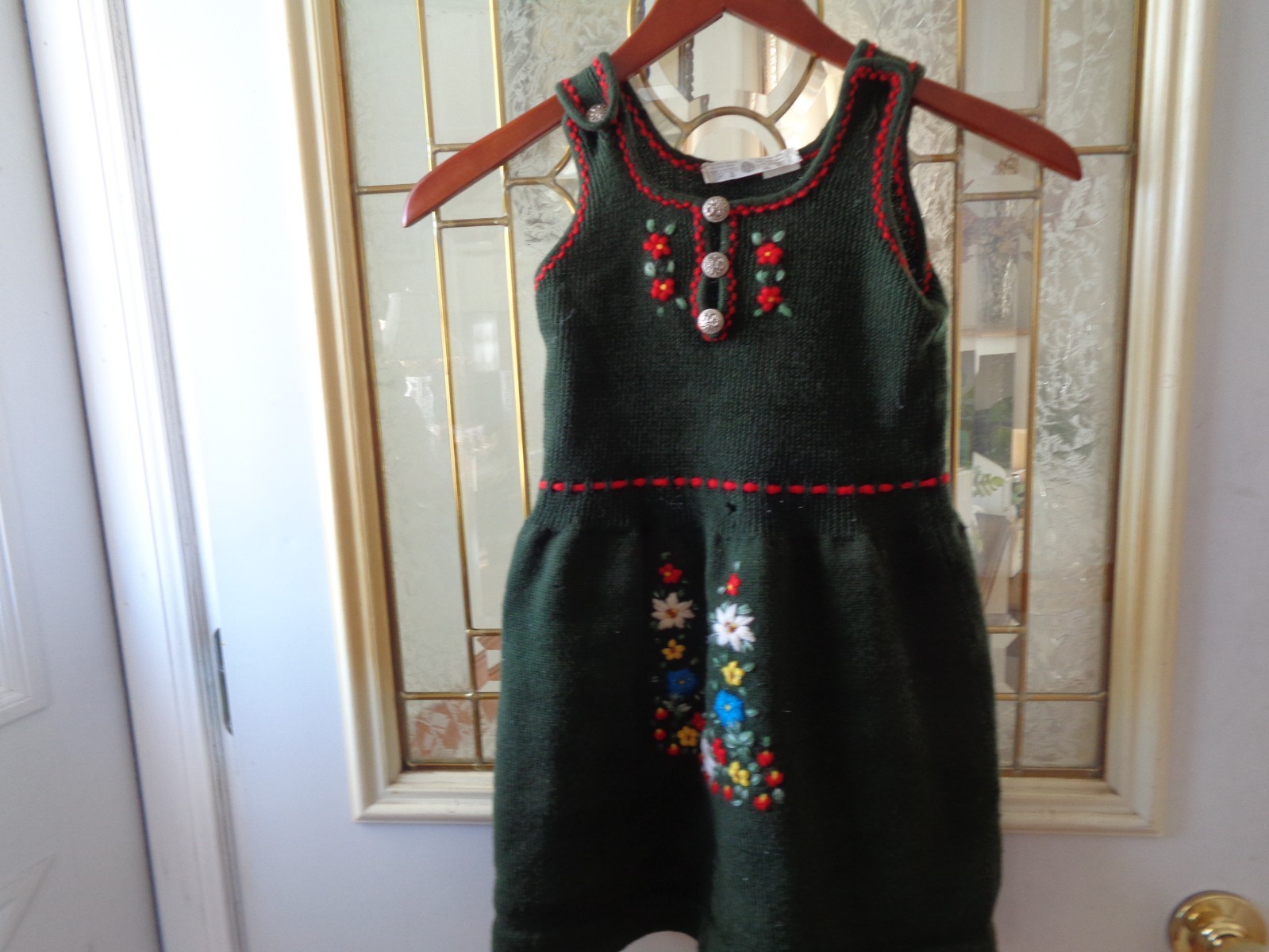 как выглядит VINTAGE GIRLS MADE IN ITALY WOOL SIZE 6 DRESS W/EMBROIDERY FLOWER DESIGN фото