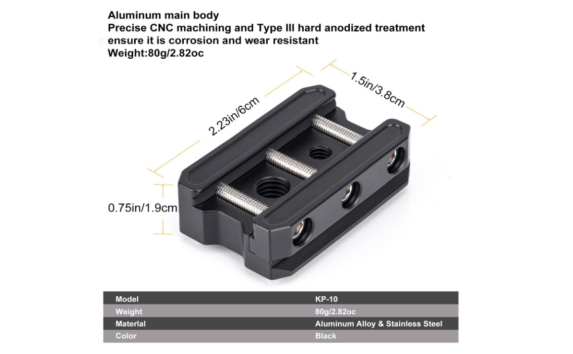 как выглядит Picatinny Arca Swiss Plate Tripod Mount Adapter 7075 Aluminum Black 2.36 Inch фото