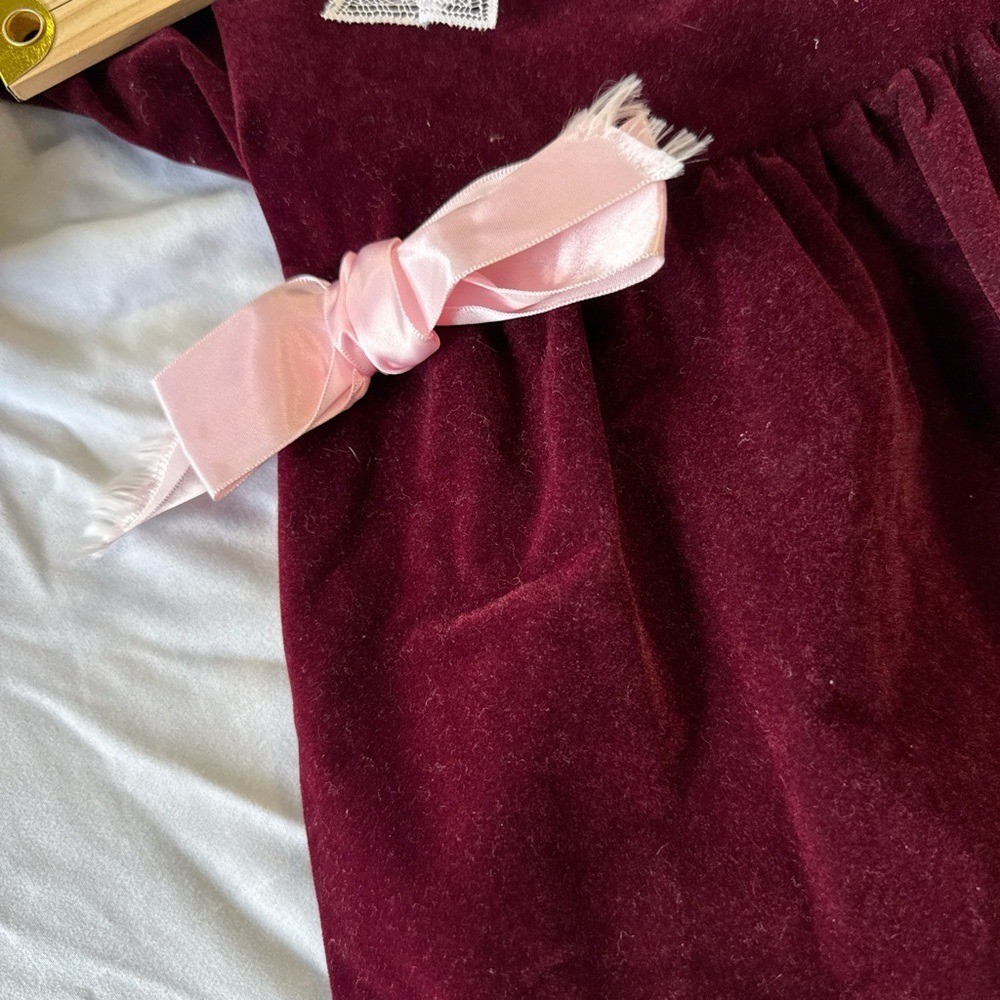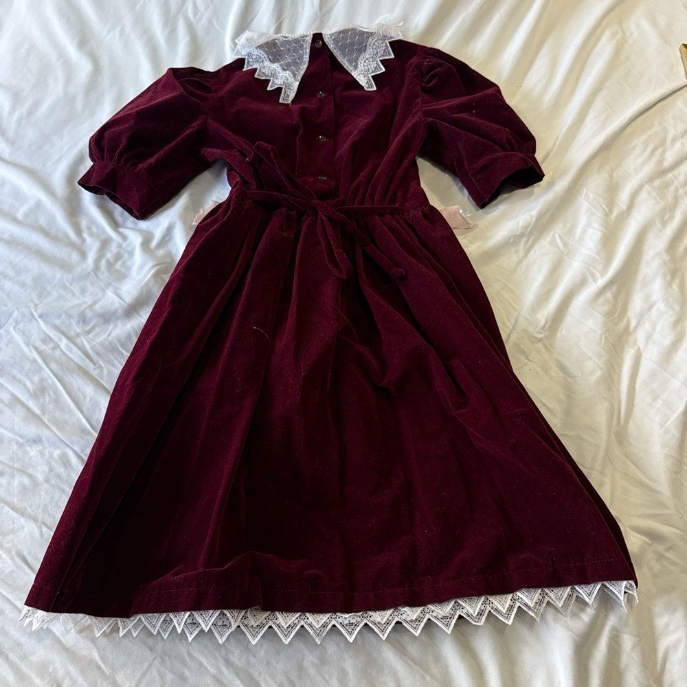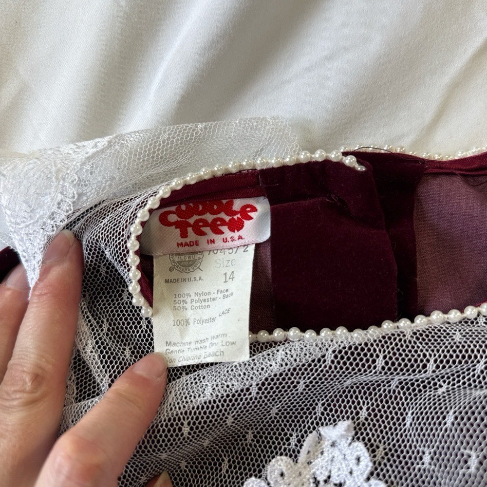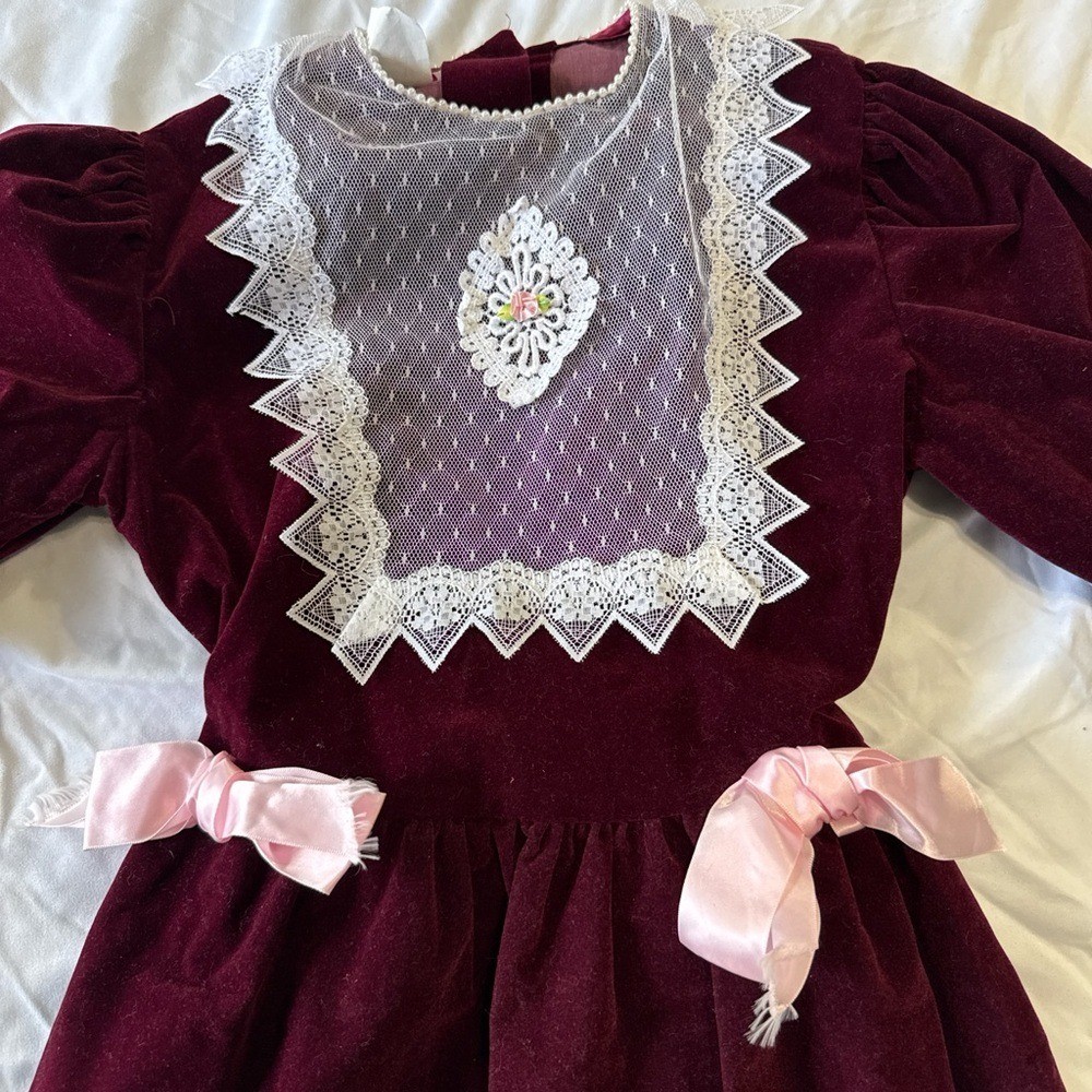 как выглядит Vintage 80s Cuddle Teen Elegant Burgundy Velvet Kids Formal Dress фото