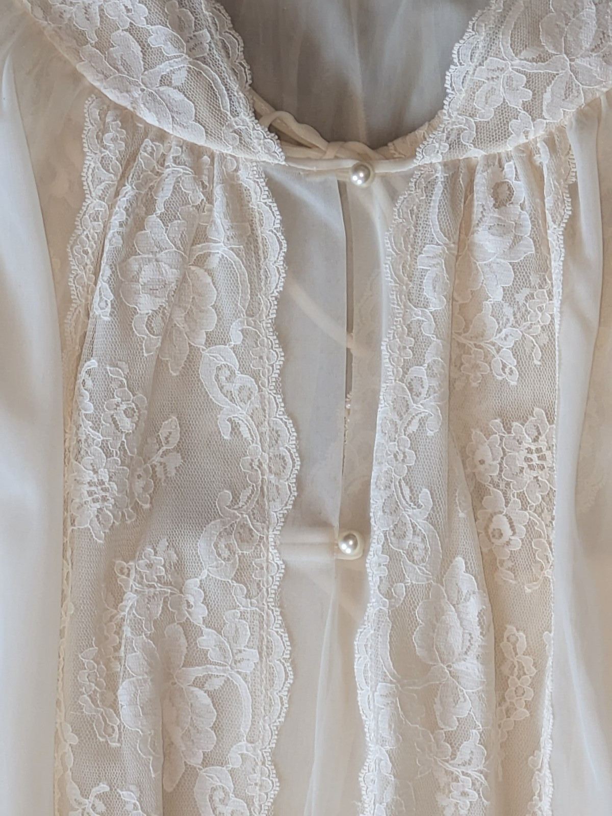 Vintage ShadowLine Gown Robe Peignoir Set Lace Sheer Nylon Chiffon Size Medium