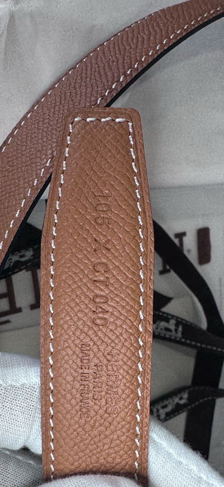 как выглядит Auth Hermes Belt Double Sided Reversible Togo Calfskin Silver H Constance Buckle фото