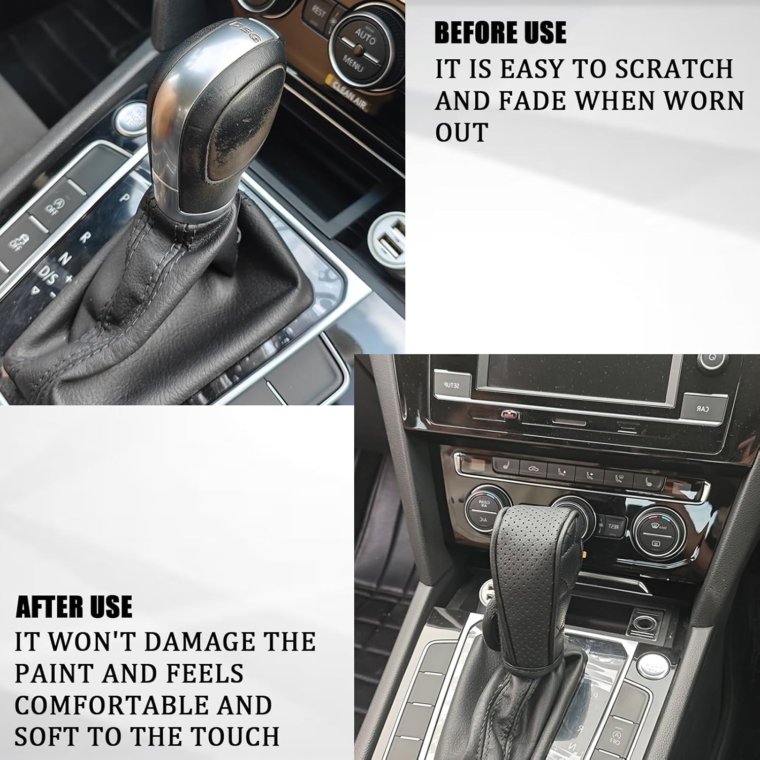 PU Leather Car Gear Shift Knob Cover, Manual/Automatic, Waterproof-Black