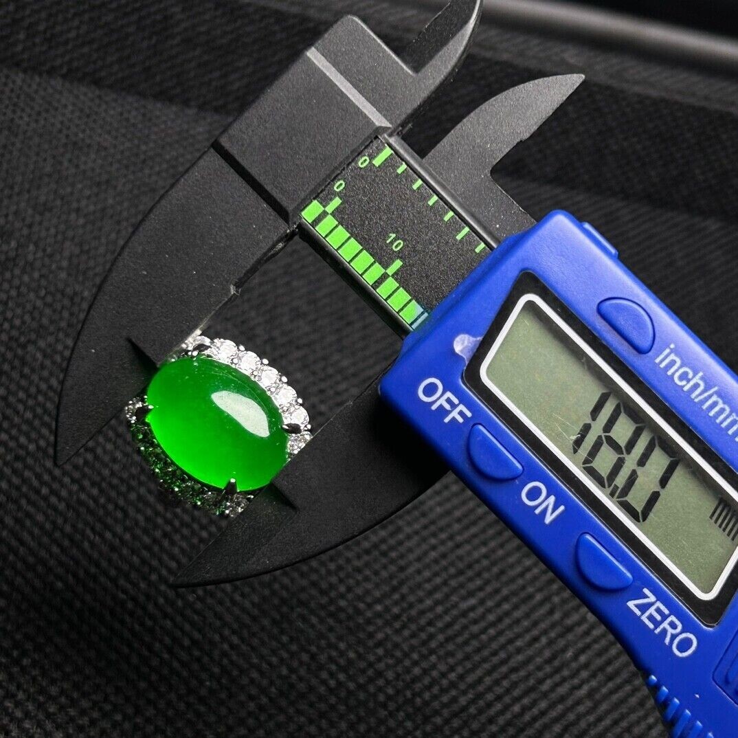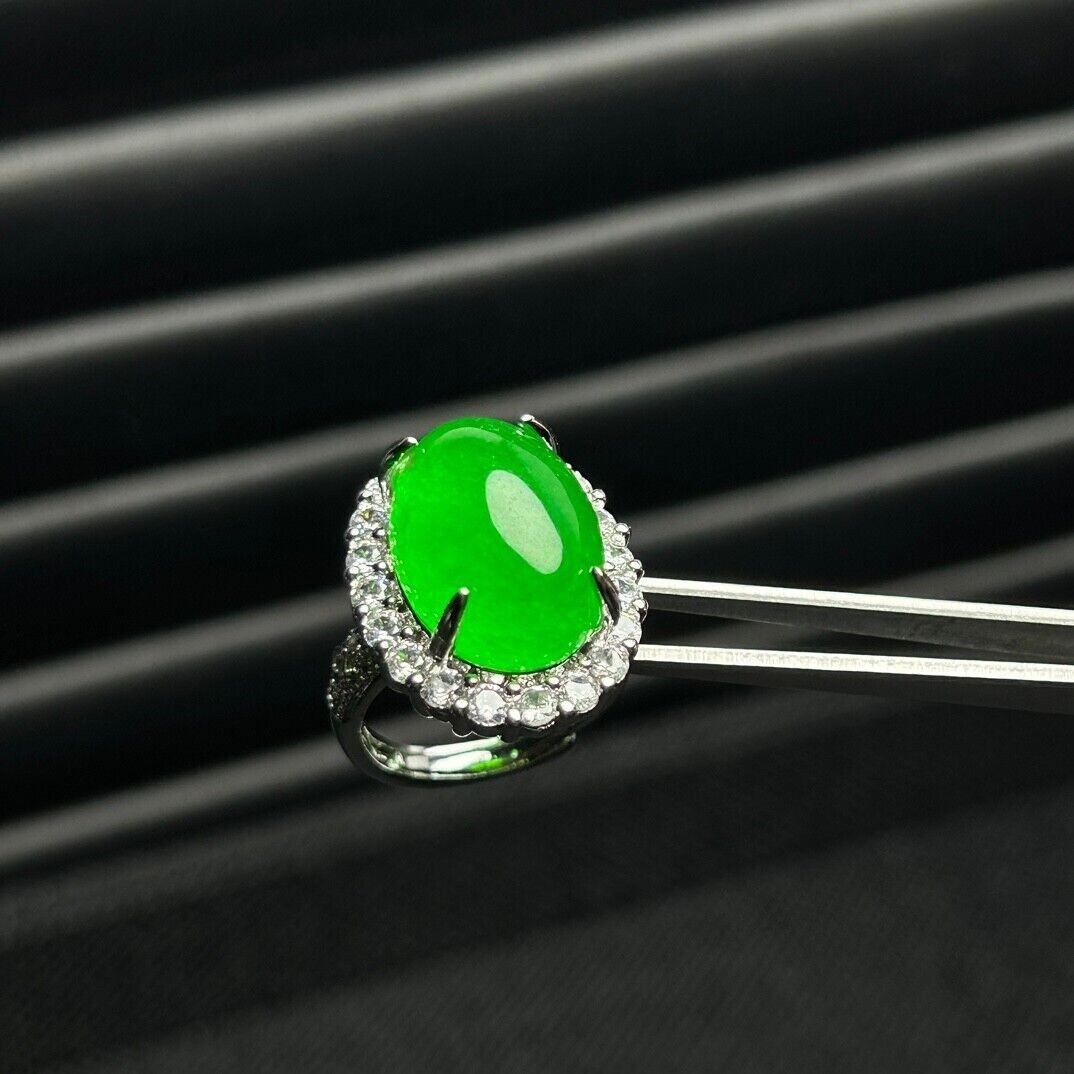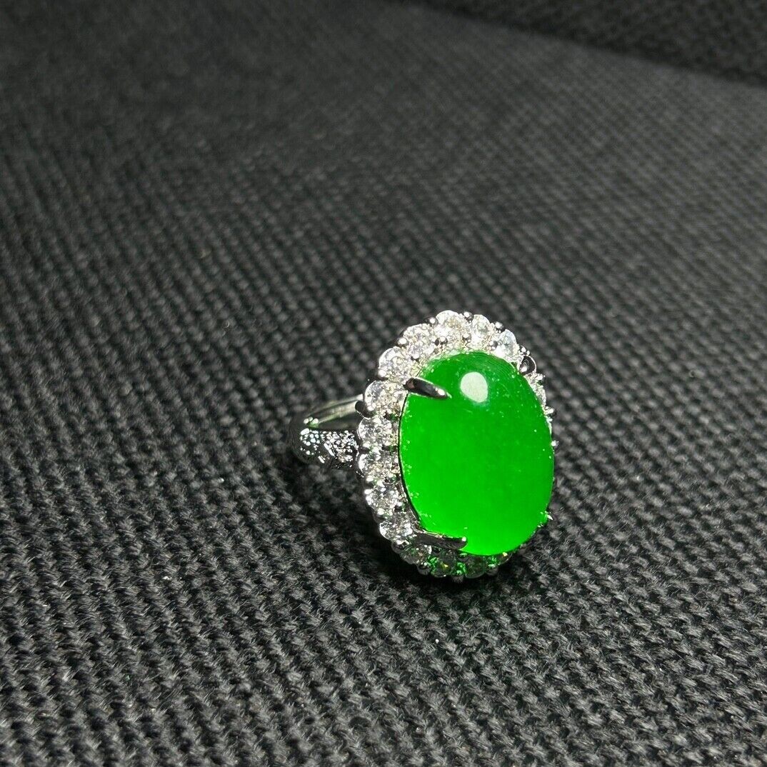 Real Natural inlay Ice Green Burmese Jade Jadeite Amulet Rings