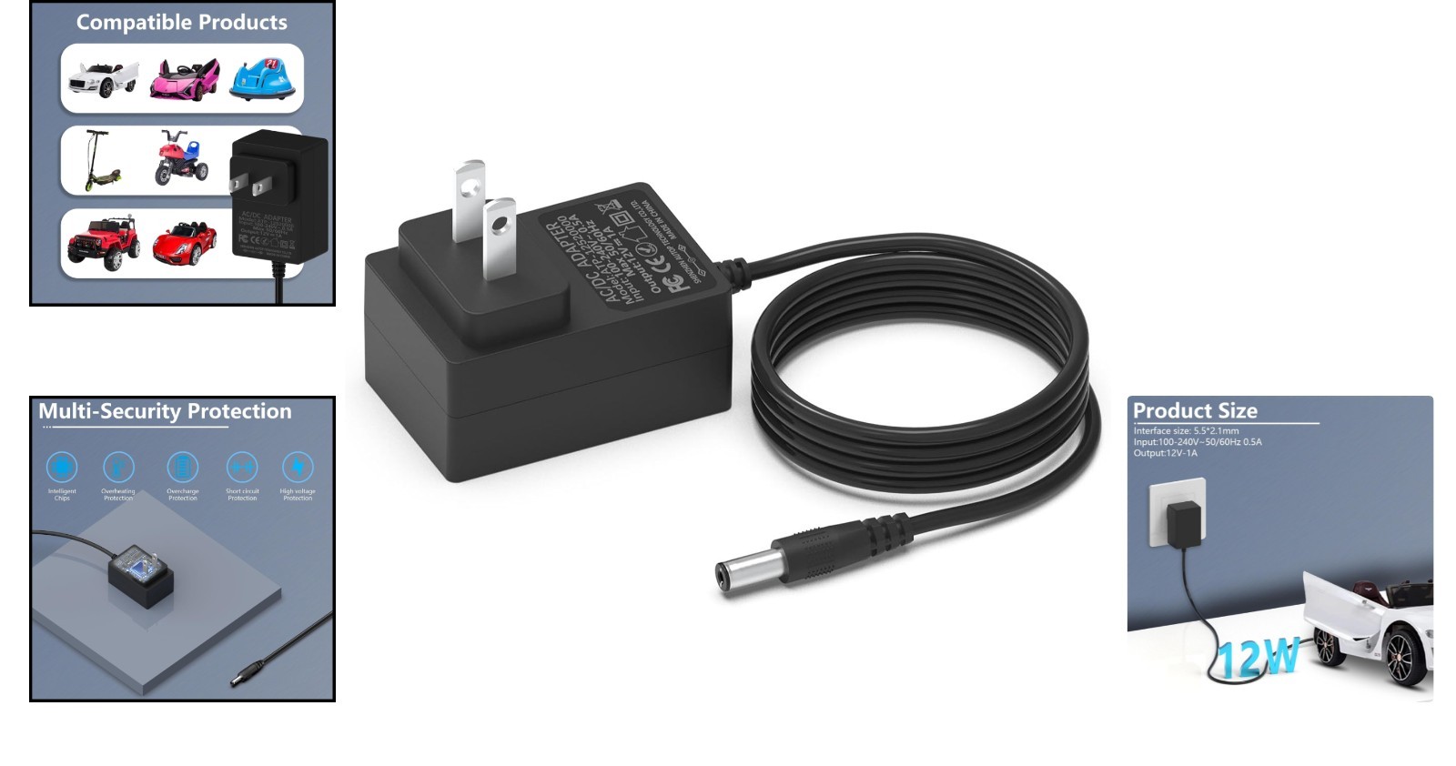 Safety-Certified 12V Battery Charger for Kids' Ride-On Vehicles - 6FT Length