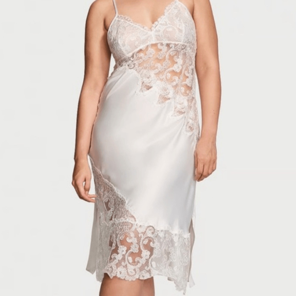 как выглядит The Victorias Secret Satin Boho Floral Embroidery Midi Slip, Size Small. NWT фото