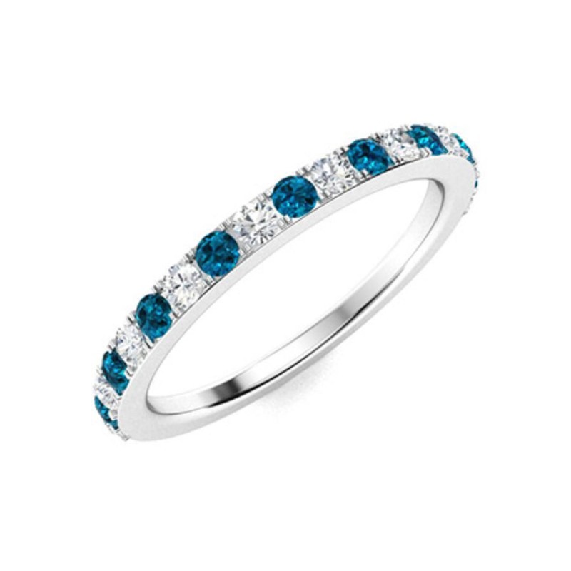 как выглядит 925 Sterling Silver Round London Blue Topaz Half Eternity Band Ring For Women фото