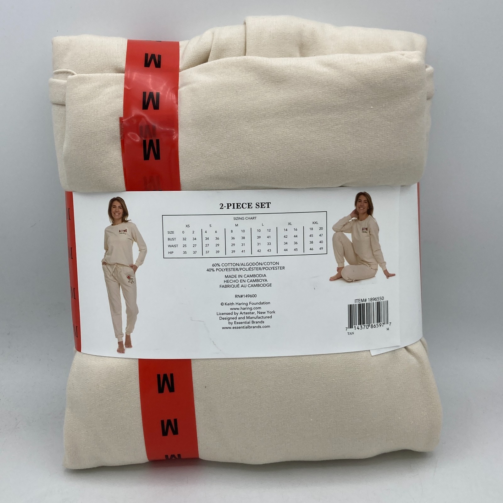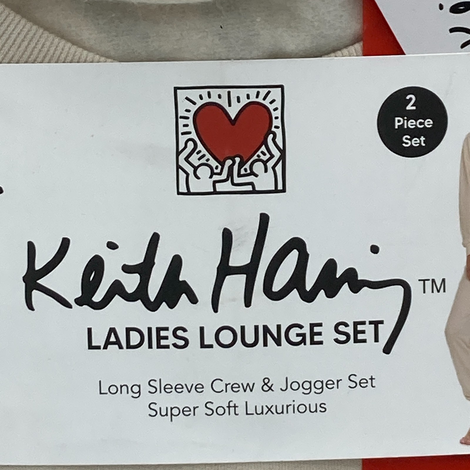 как выглядит Keith Haring Womens Soft Fleece Lounge Set Long Sleeve Crew Joggers Cream M фото