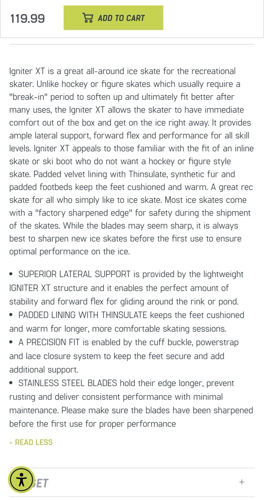 Rollerblade Igniter XT Ice Skates Men s US 9