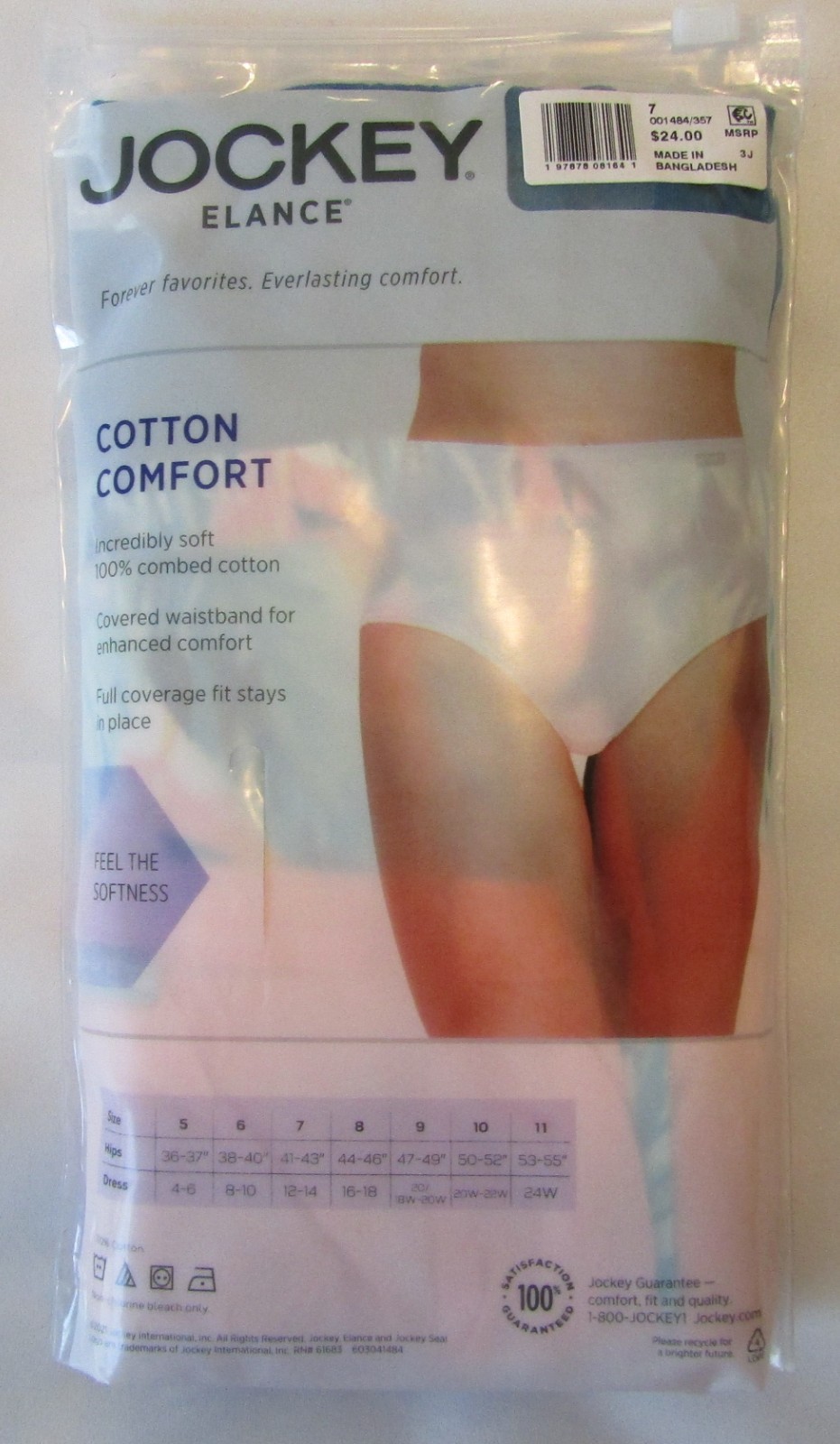 Jockey Elance 100 Cotton Brief Underwear - Women's Size 7 Brand New