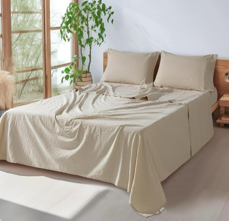 как выглядит 100 French Pure Linen Sheet Set Breathable Durable Linen California King Size фото