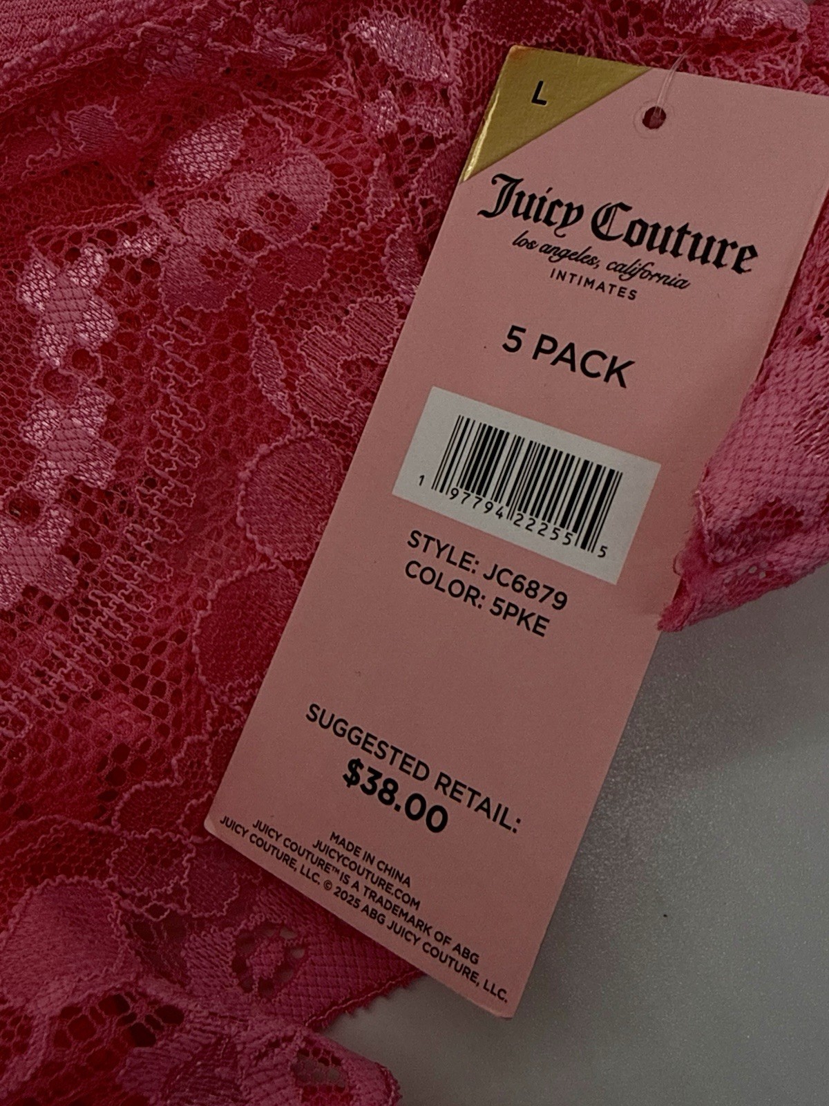 JUICY COUTURE 5 Pack Women's L Bling Lace Show Me Off Panties JC6879