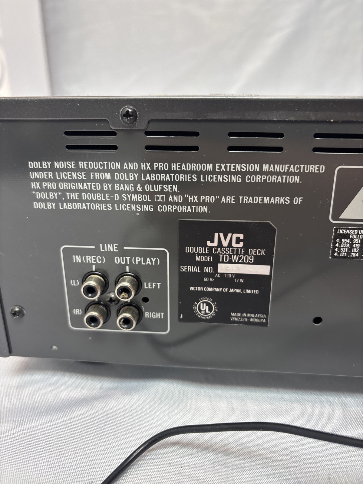 JVC TD-W209 Auto Reverse Double Cassette Deck Dolby B-C NR HX PRO Tested Works