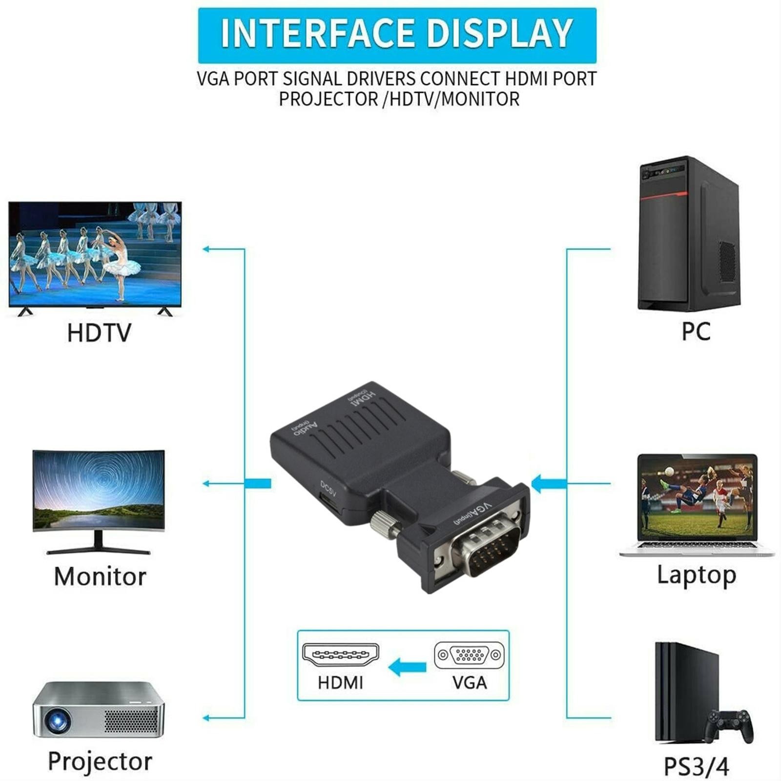 VGA Input To HDMI Output Adapter PC Laptop To HDTV Moniter Projecter Converter C