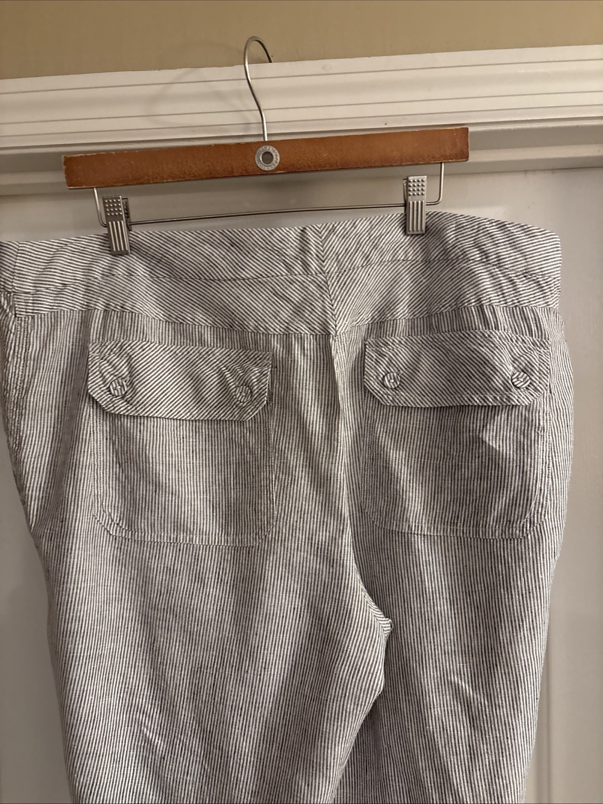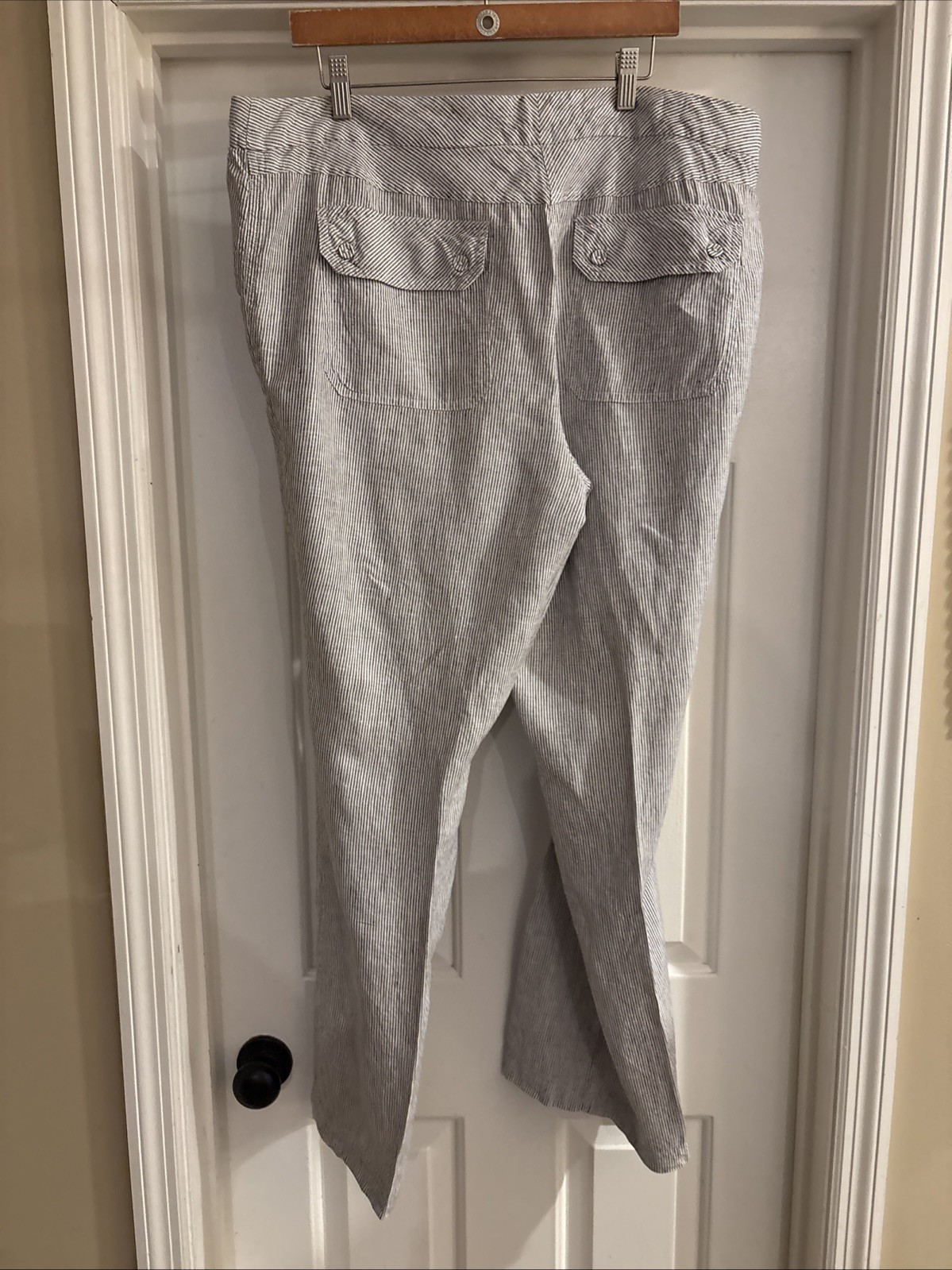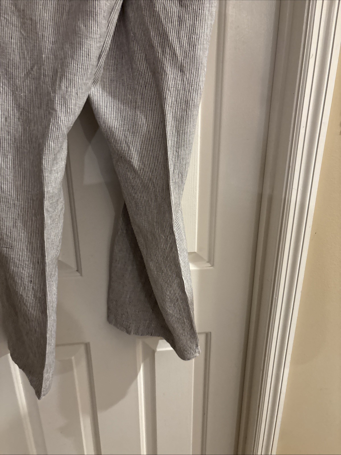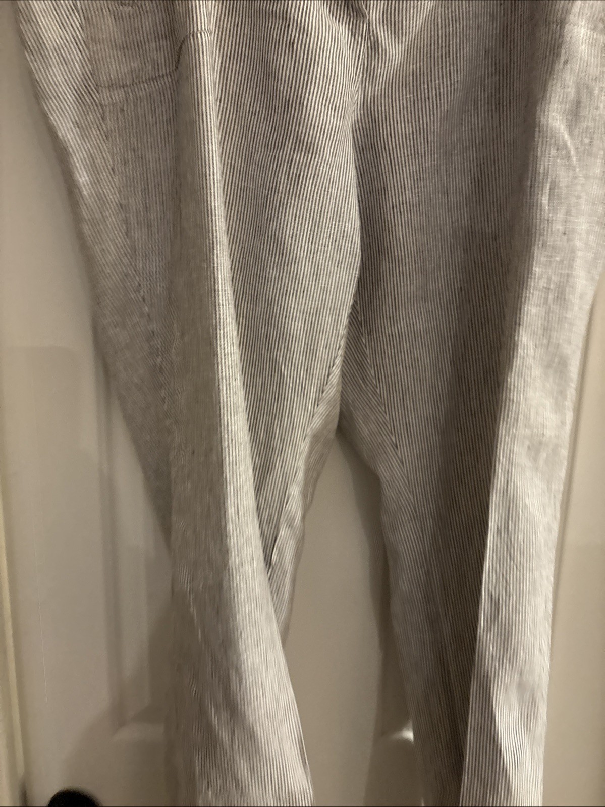как выглядит Chicos Ultimate Fit 100 Linen Wide Leg Pant Brown Ivory Stripe Size 3 фото