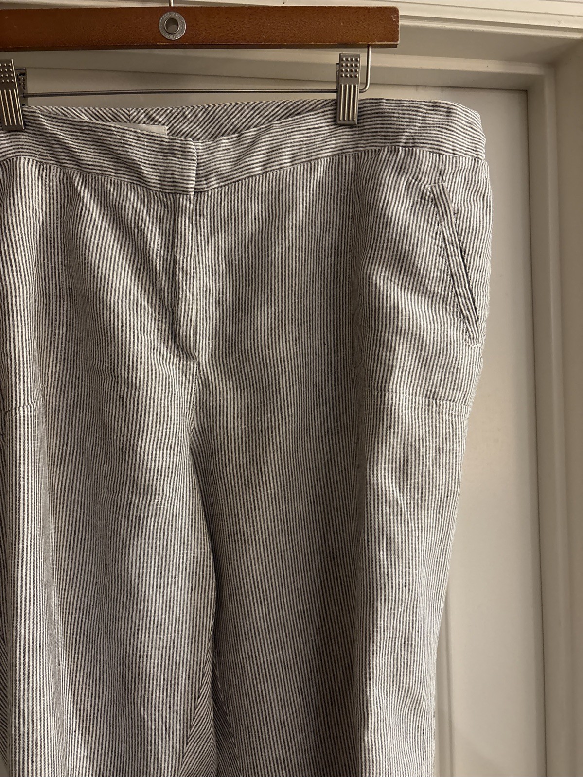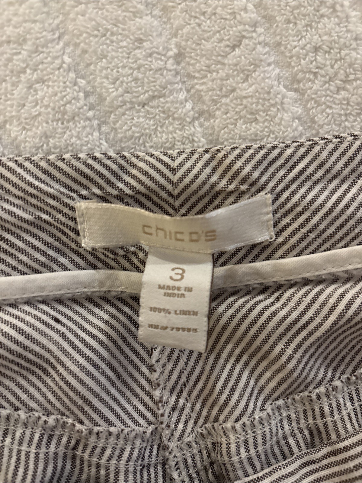 Chico's Ultimate Fit 100 Linen Wide Leg Pant Brown Ivory Stripe Size 3