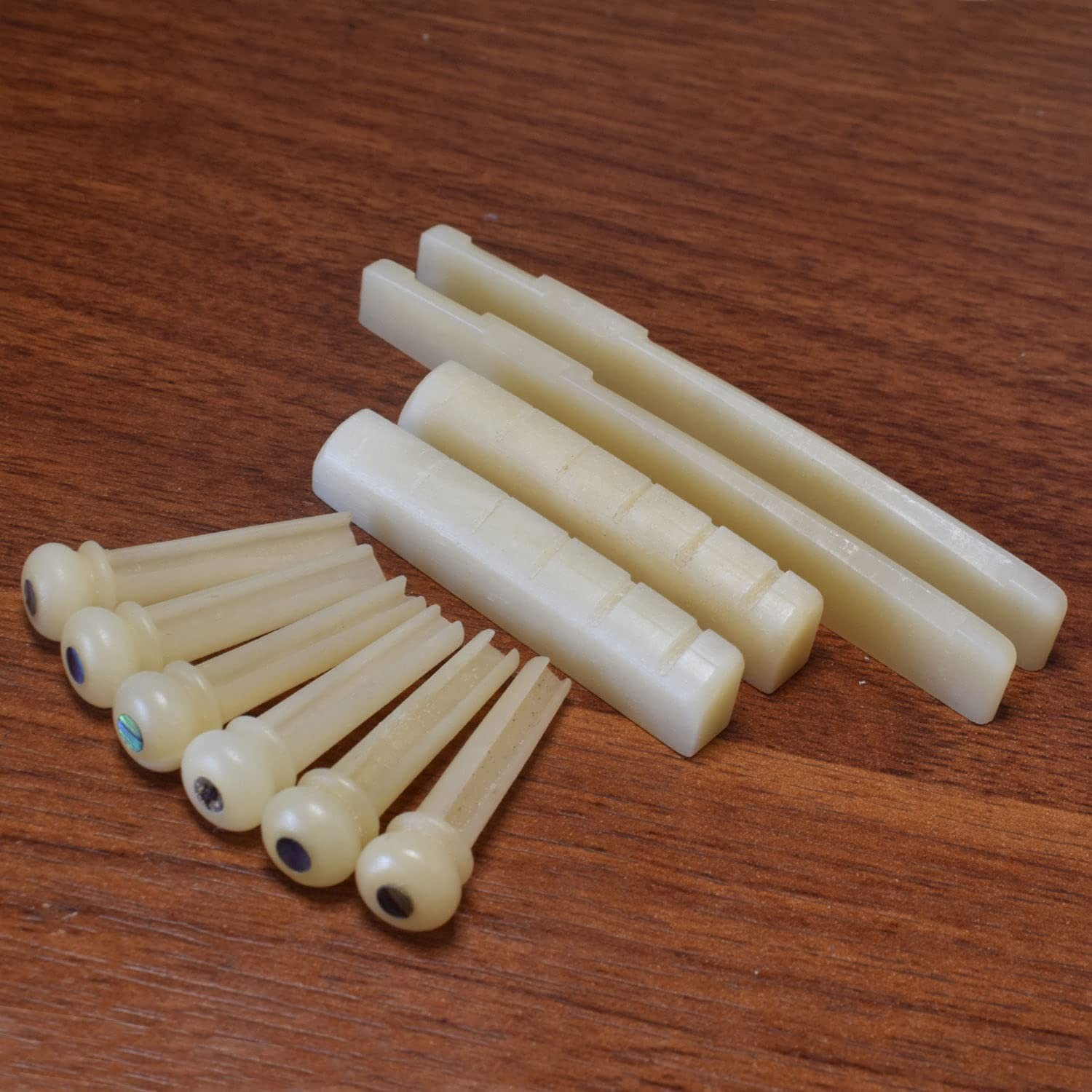 Unbleached Guitar Bridge Pins 6pcs, Bone Nuts Saddles Set for Acoustic Guitar