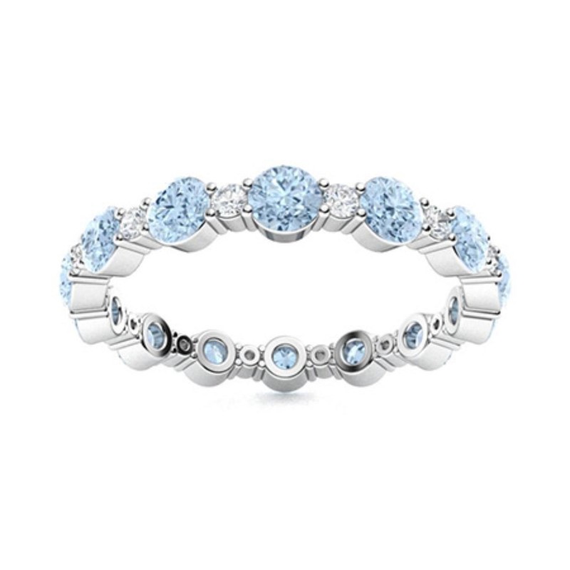 925 Sterling Silver Aquamarine Gemstone Eternity Engagement Womens day Ring
