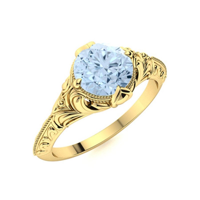 Natural Aquamarine 925 Sterling Silver Engagement Solitaire Ring Jewelry