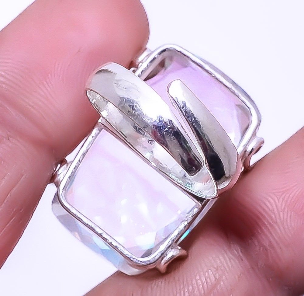 как выглядит Aqua Rainbow Mystic Topaz 925 Sterling Silver Handmade Ring Adjustable R545 фото