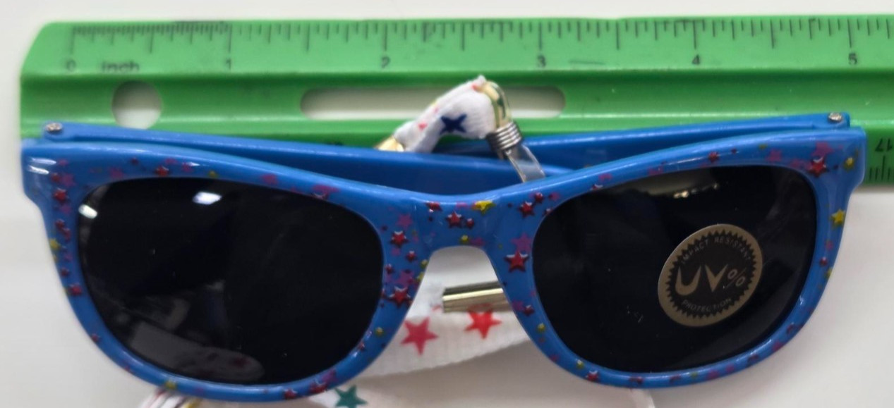 Vintage Kids Star BLUE Sunglasses with Cord, UV, Classic shape New Old Stk 1980s