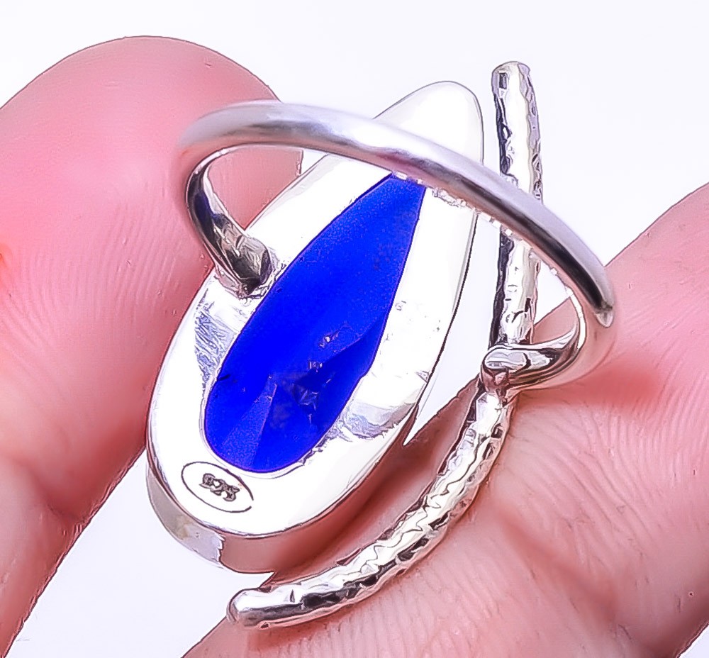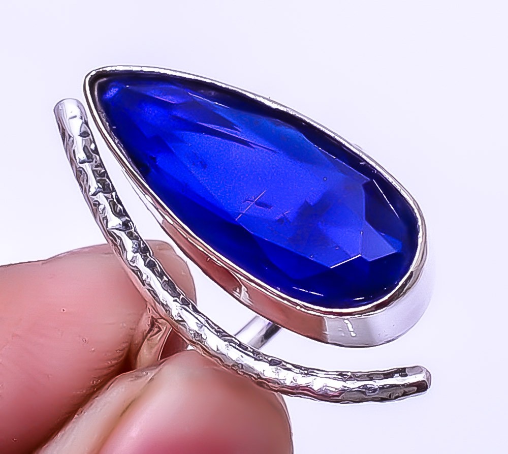 Blue Sapphire Designer Simulated 925 Sterling Silver Handmade Ring Adst. 64