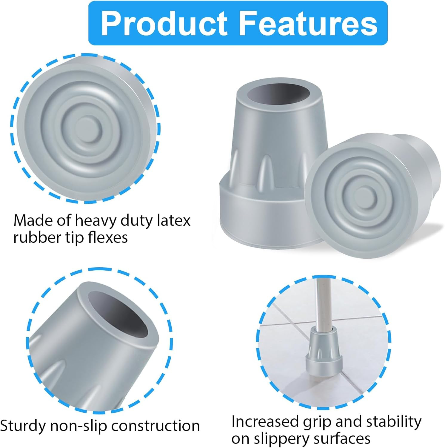 Crutch Tips, 4 Pack 7/8 Inch Heavy Duty Rubber Crutch Tips Rubber Cane Tips Repl