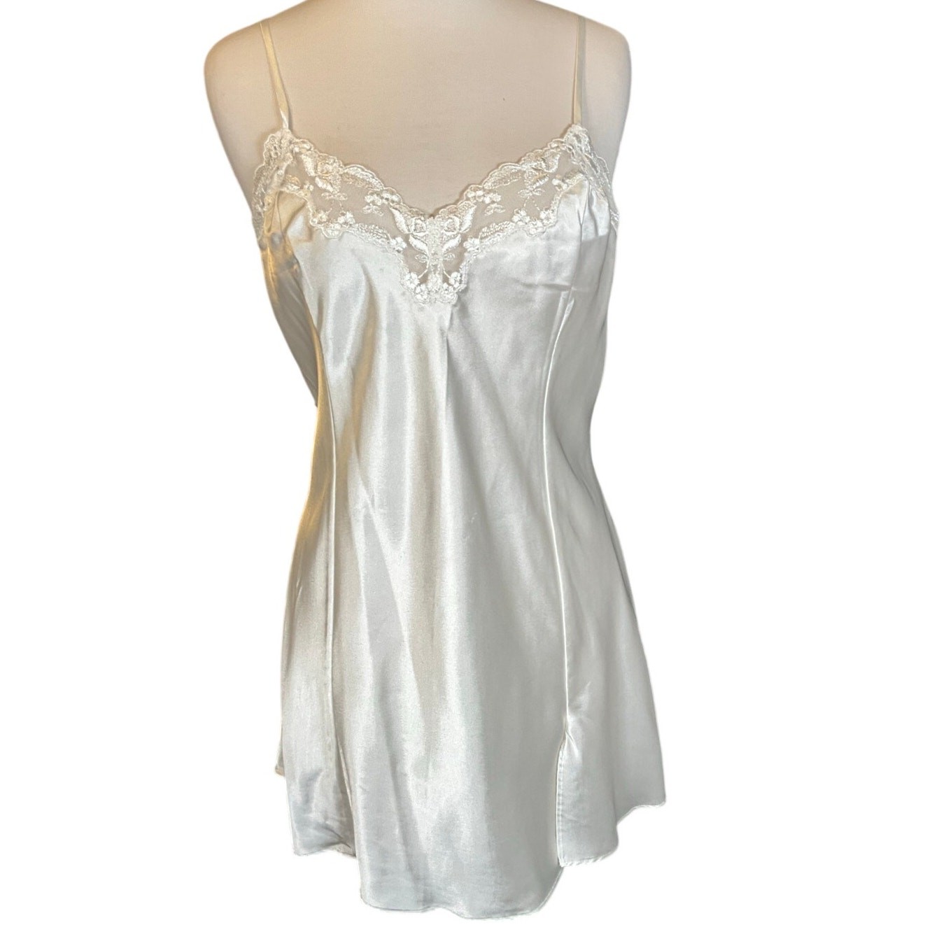 как выглядит Vintage Victoria s Secret Ivory Satin Lace Slip Y2K Coquette Large Bridal фото