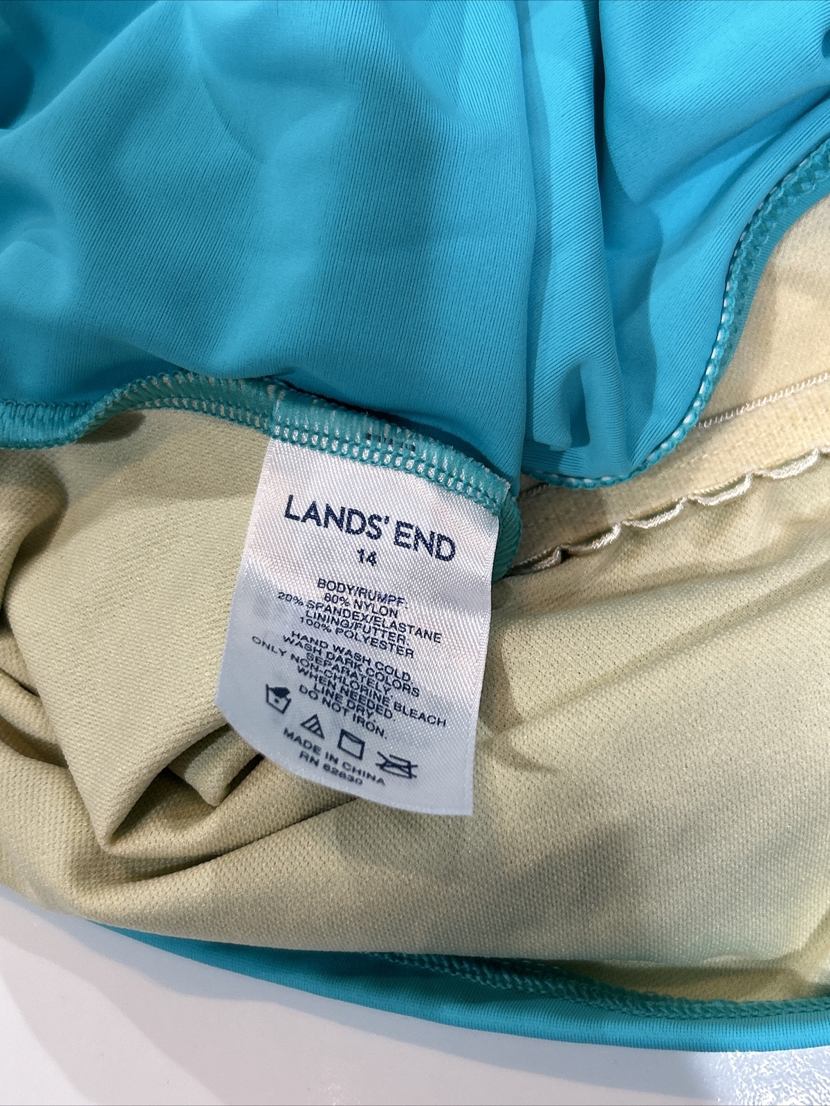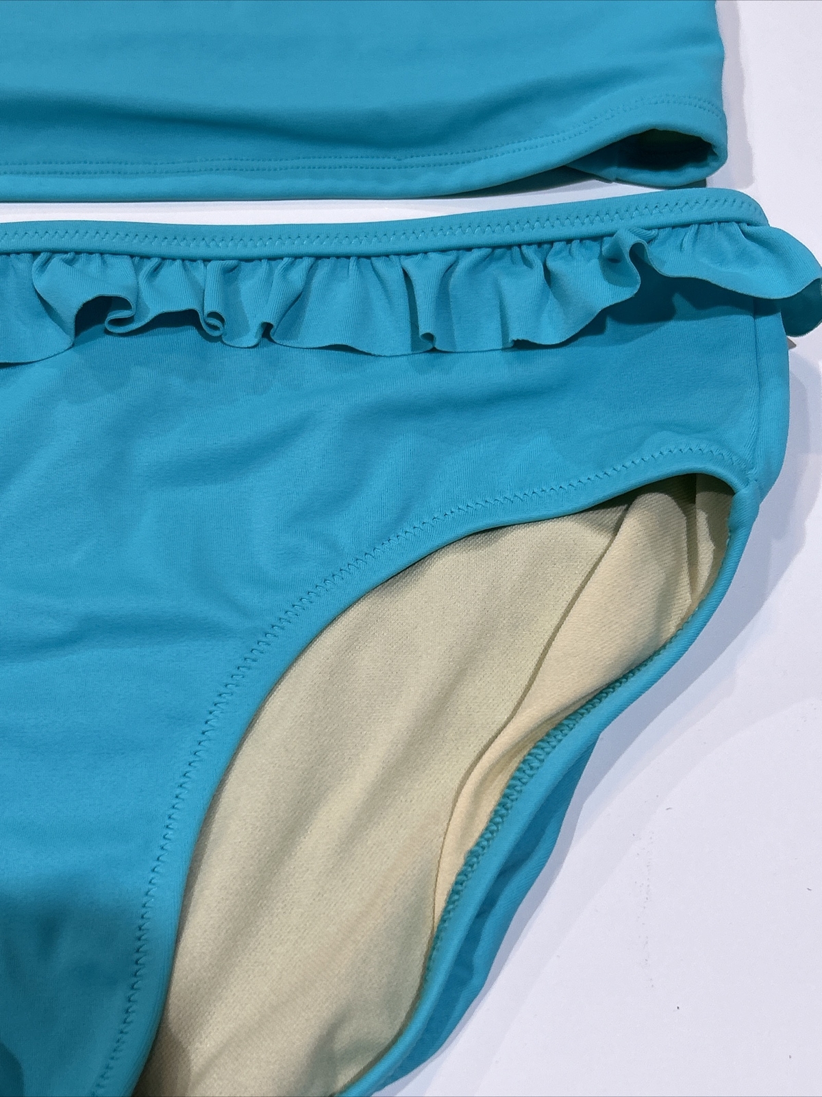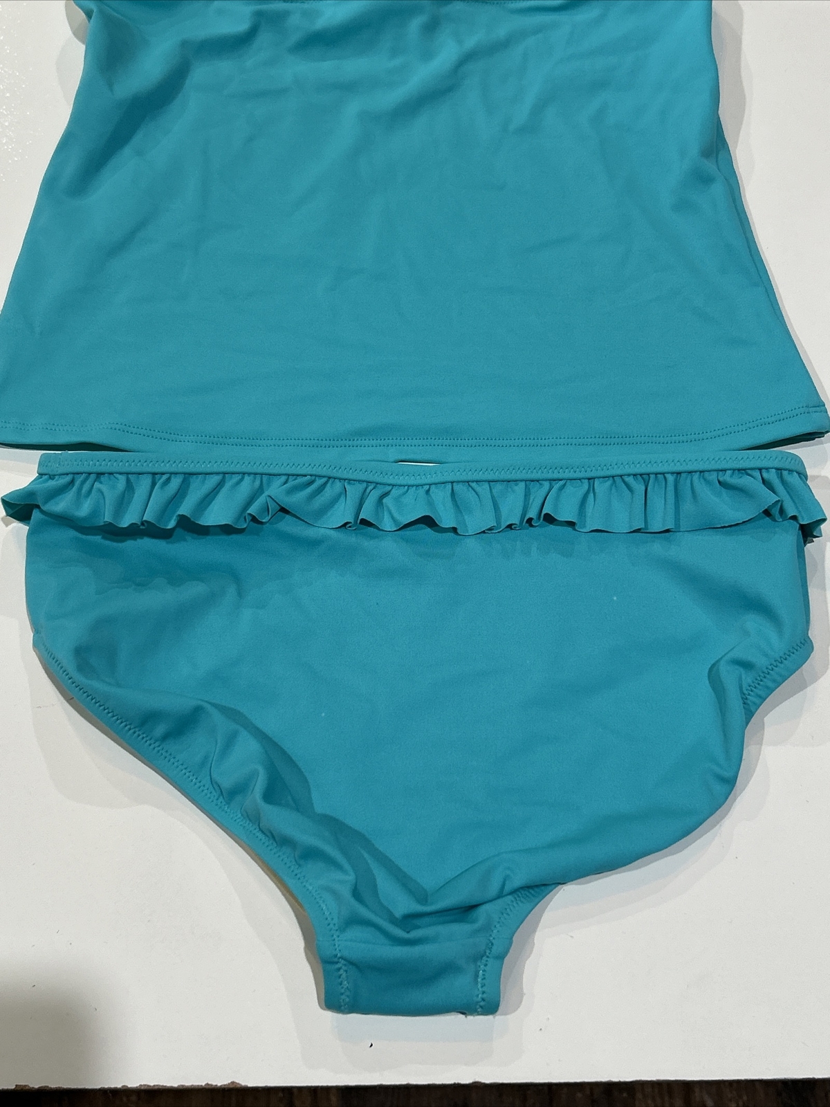 как выглядит Lands End Girls 14 Blue Stripe Two Piece Tankini Swimsuit Ruffle Edge Toucan фото