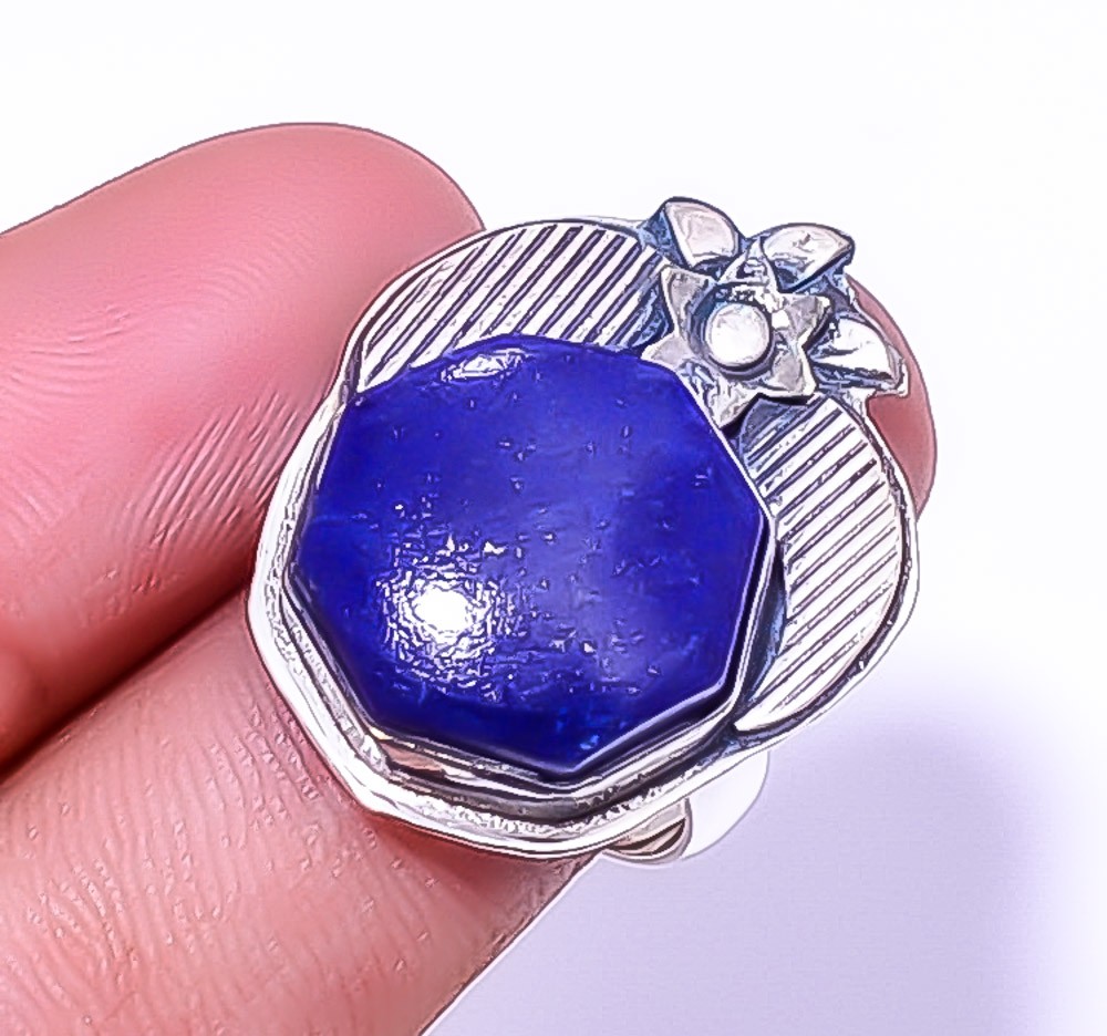Hexa - Lapis Lazuli 925 Sterling Silver Artisan Handmade Ring Adjustable 8 A342