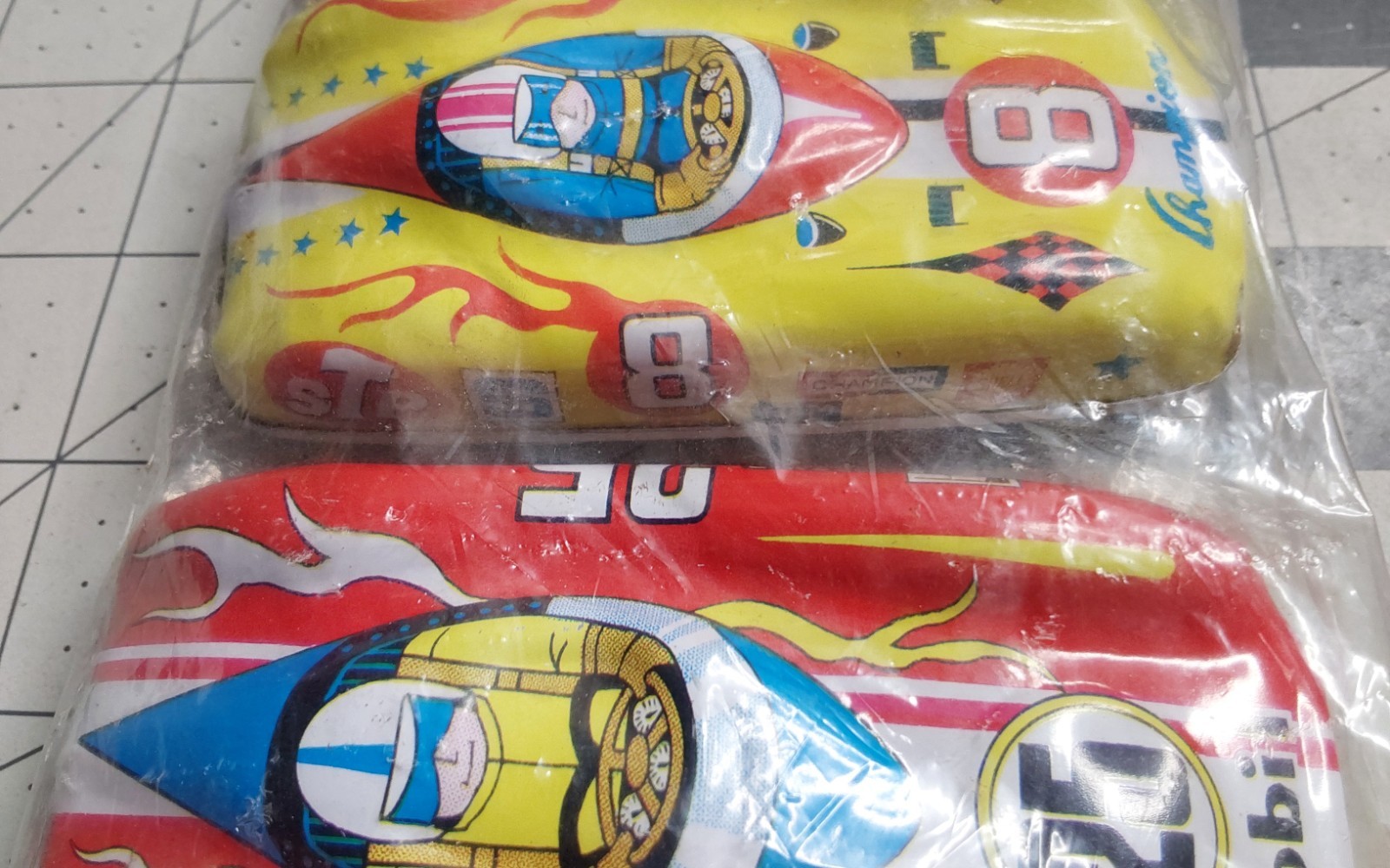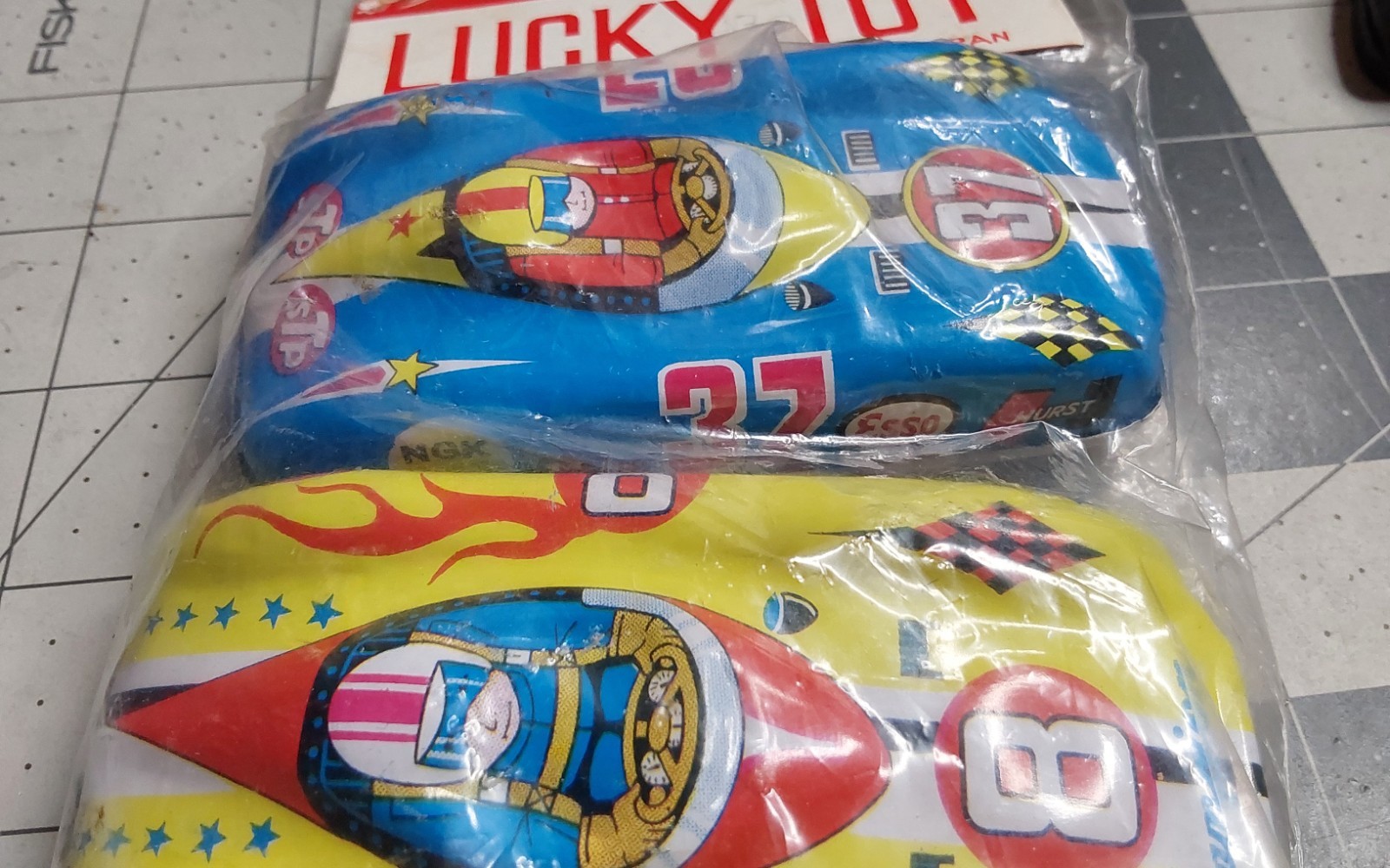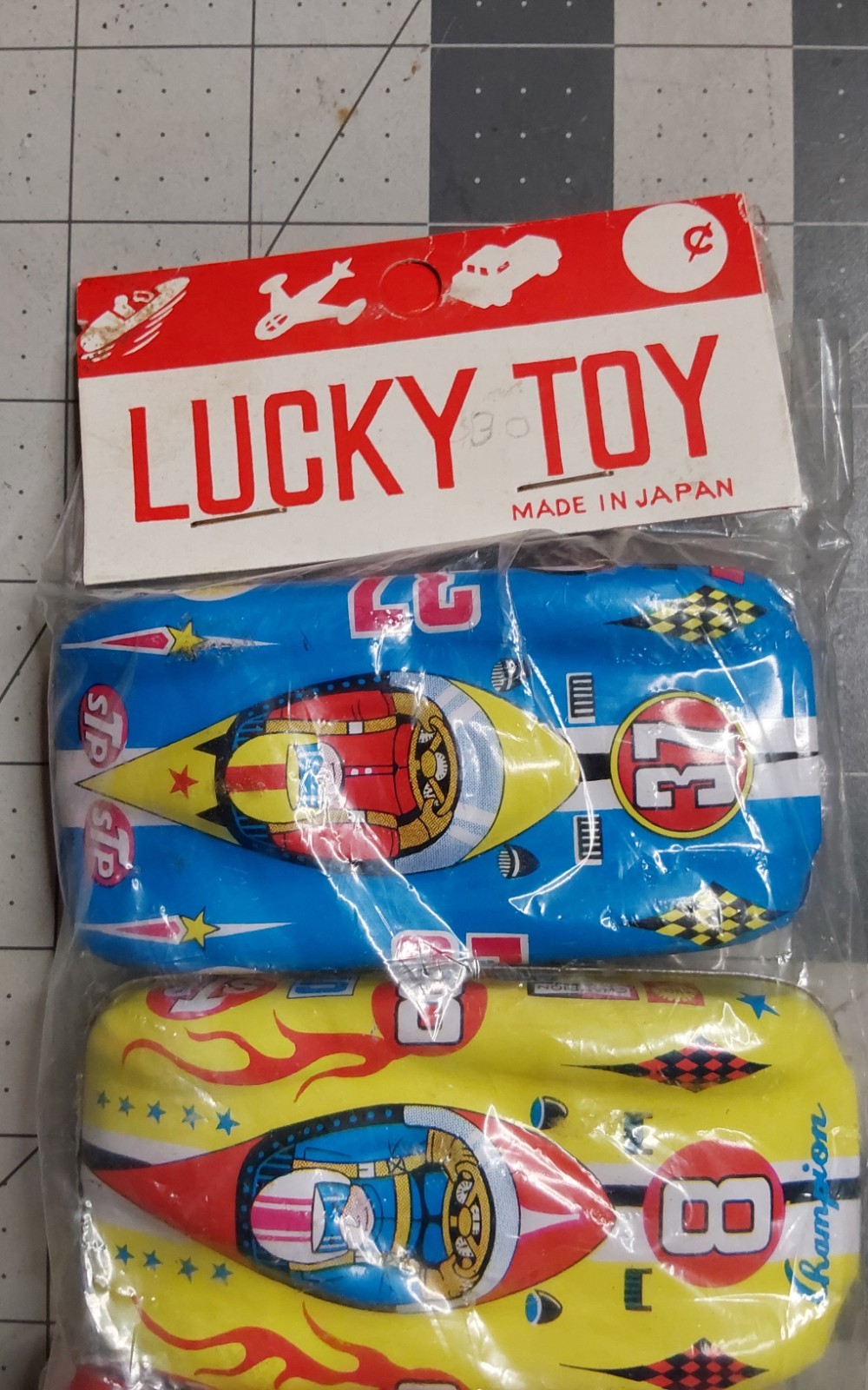 как выглядит LUCKY TOY Race Cars Made In Japan, Tin, NOS Sponsored by MOBIL, CHAMPION фото
