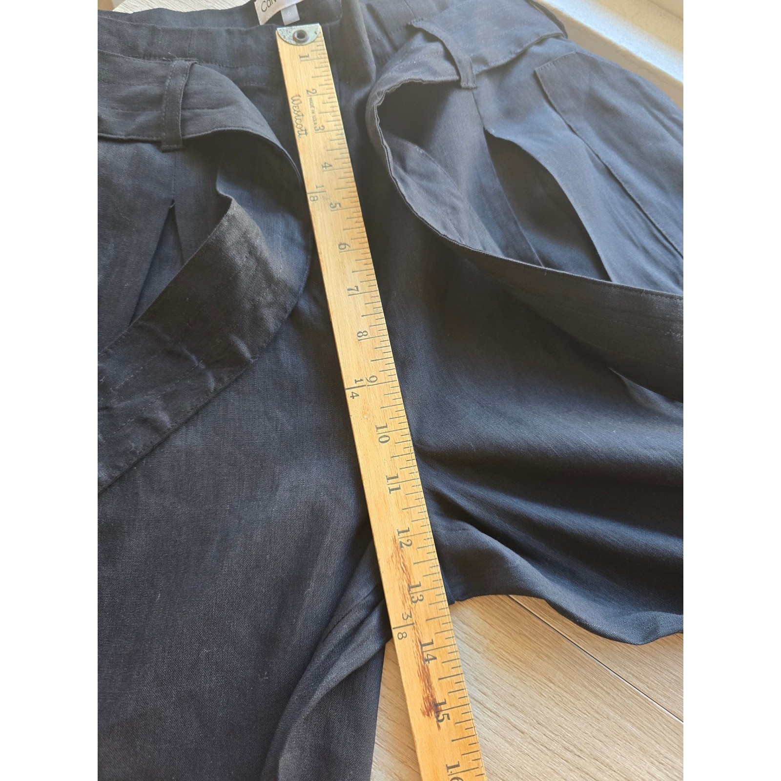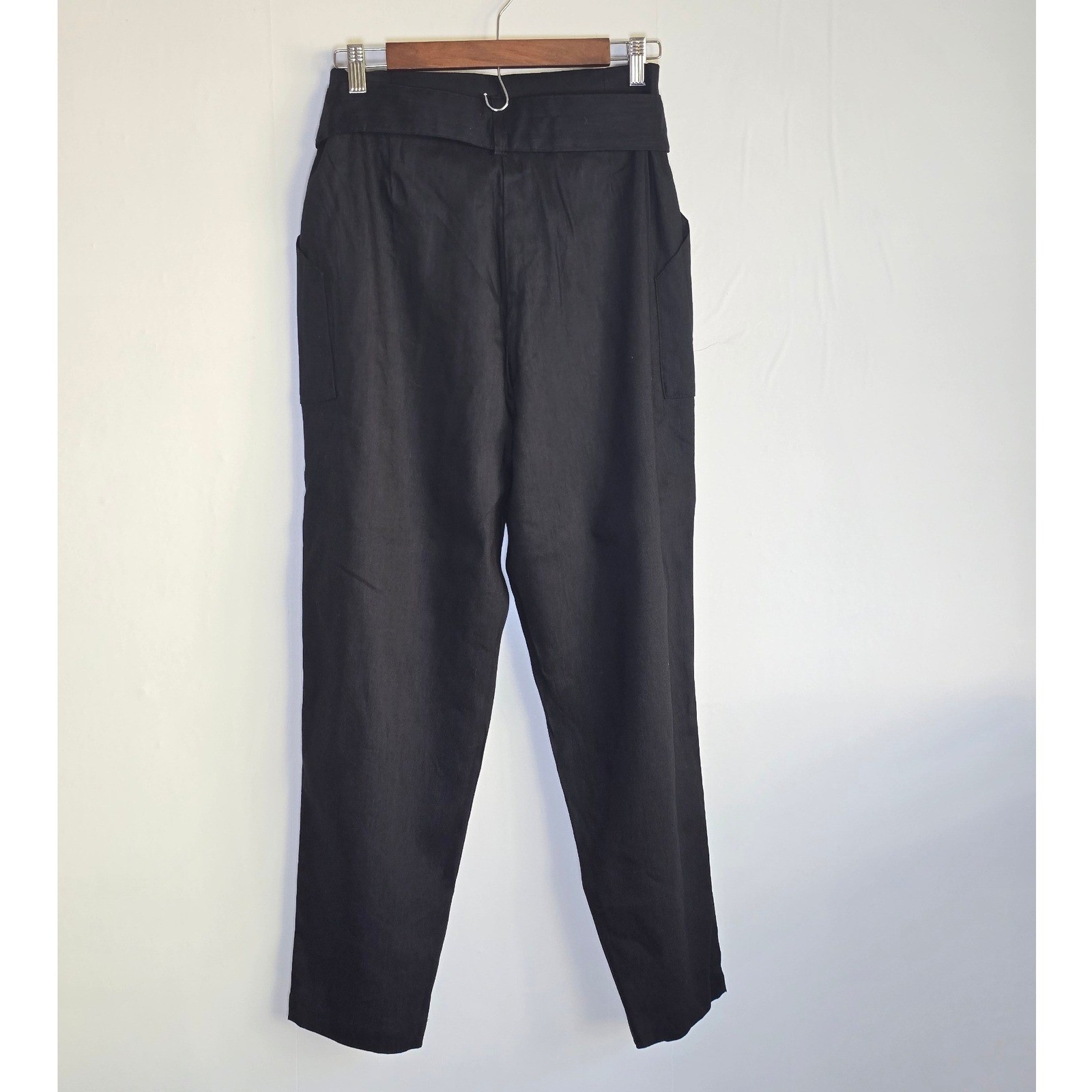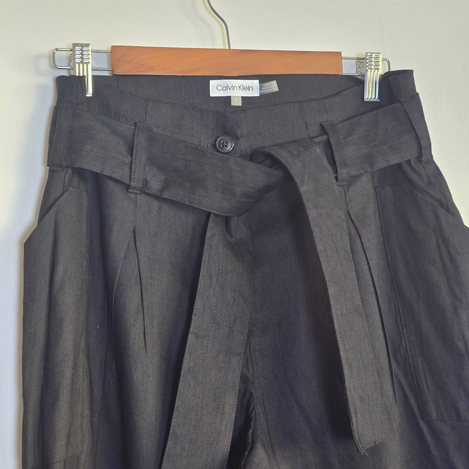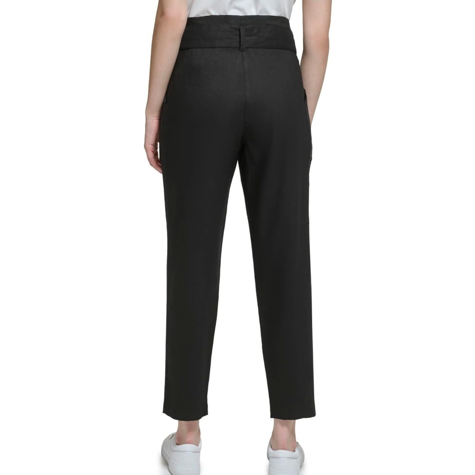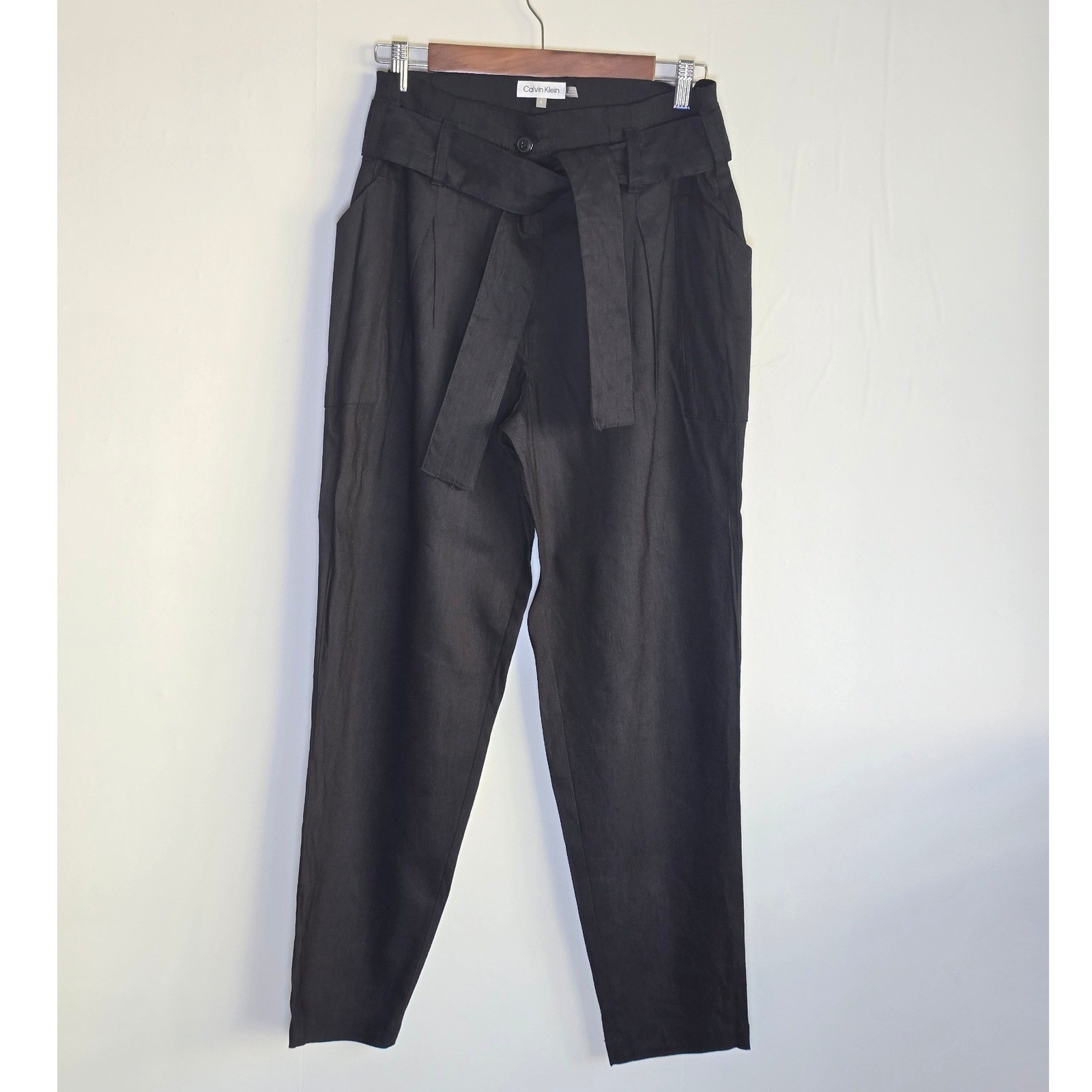 как выглядит NWT Calvin Klein Womens High-Rise Tie Waist Linen Blend Pants Size 6 Black фото