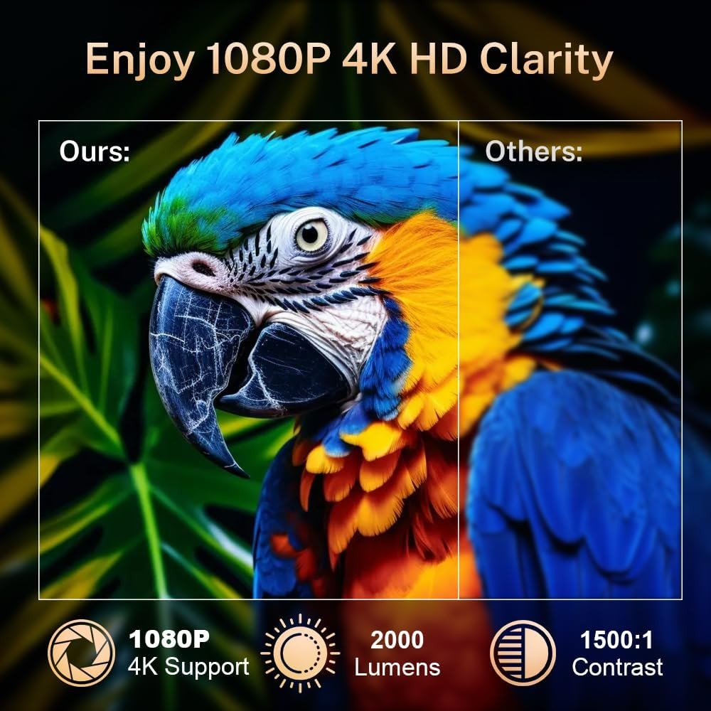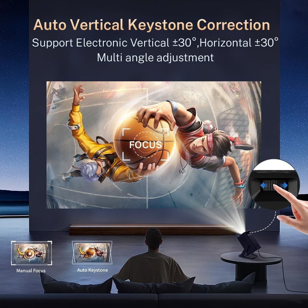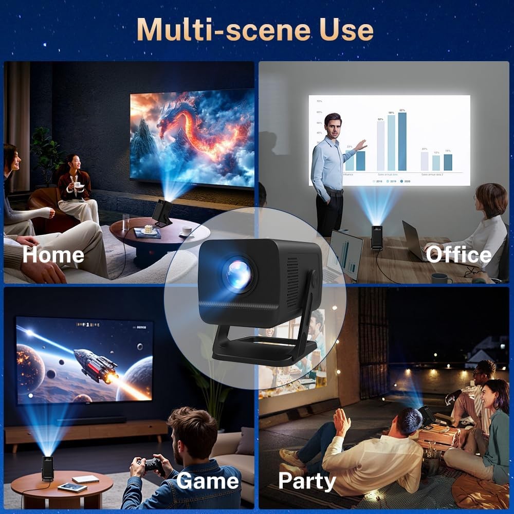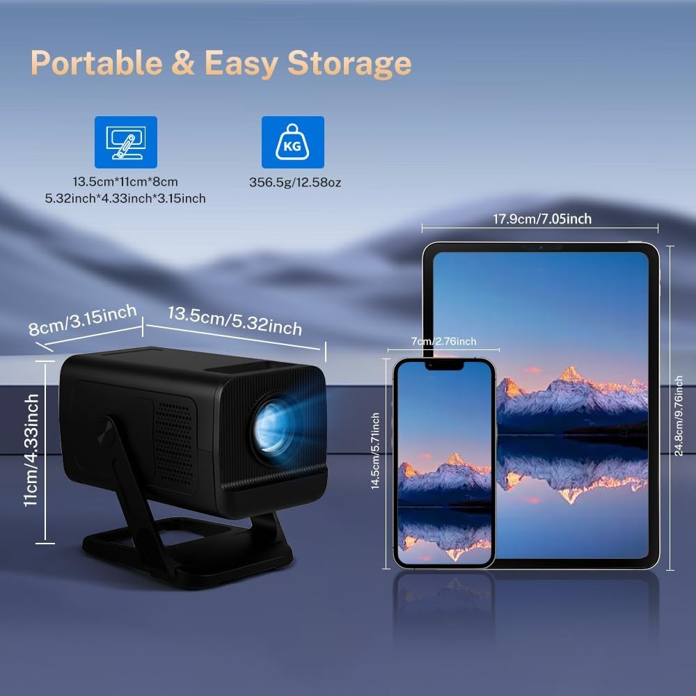 Mini Smart Projector 1080P 4K Support WiFi Bluetooth Auto Keystone Black