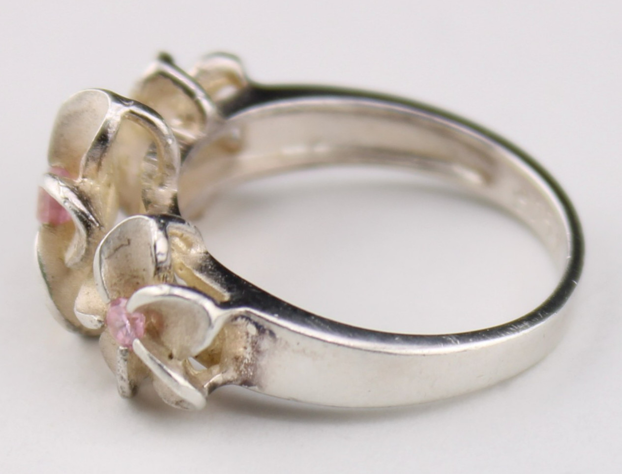 Hawaiian Plumeria Sterling Silver sz4 Wedding Band Ring Pink Crystal 925K