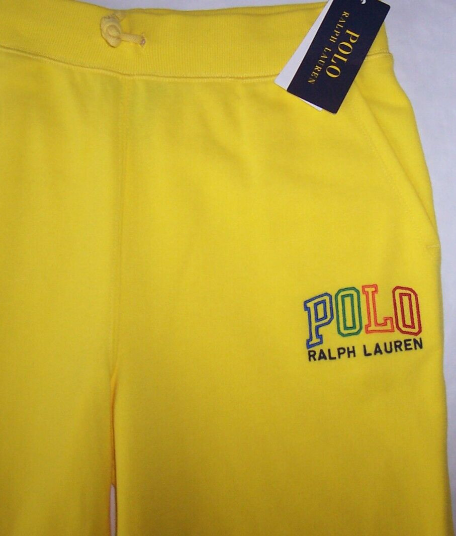 NWT Polo Ralph Lauren SUN YELLOW FLEECE Embroidered LOGO Shorts Boy L 14/16 PONY