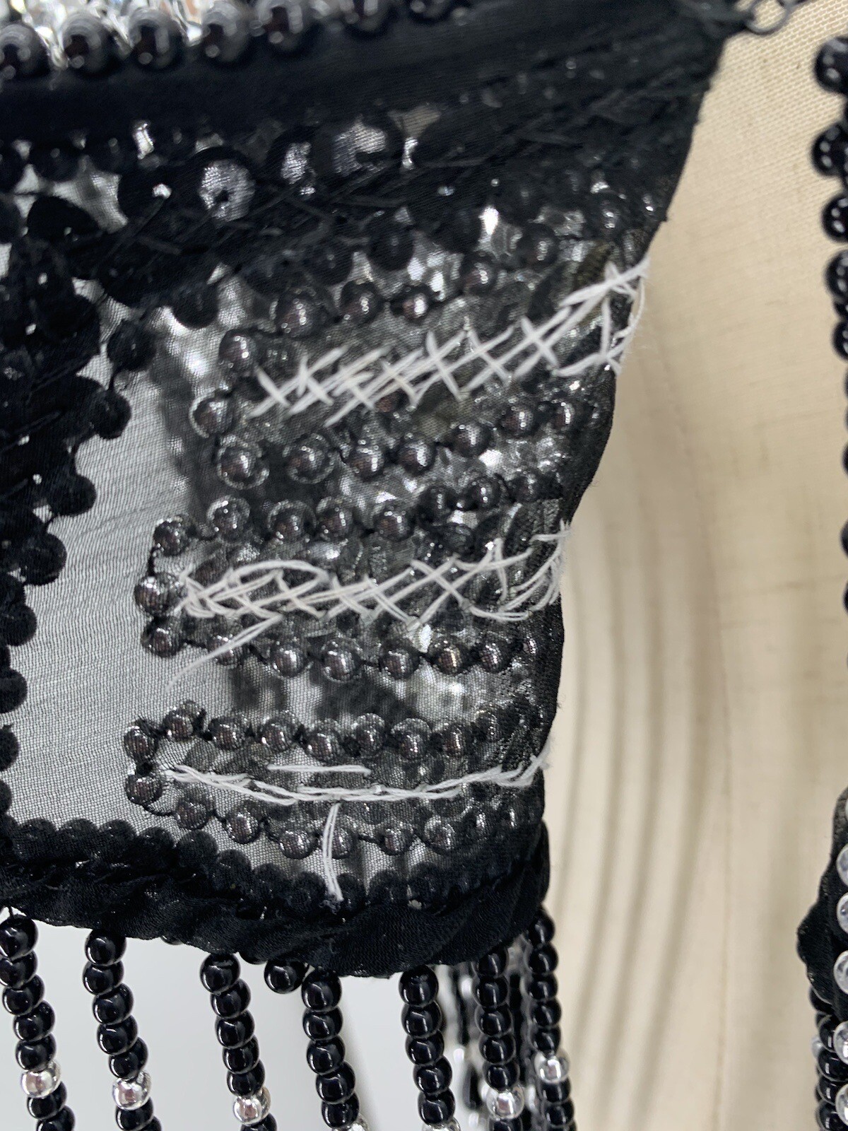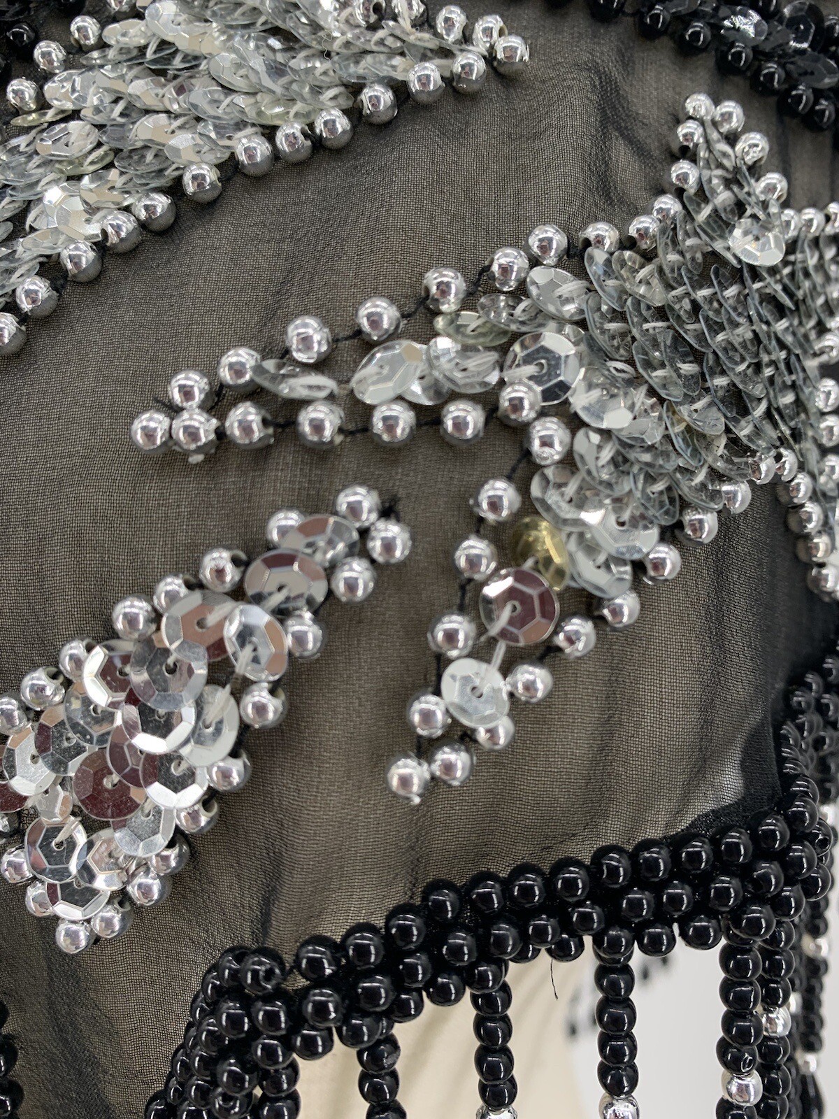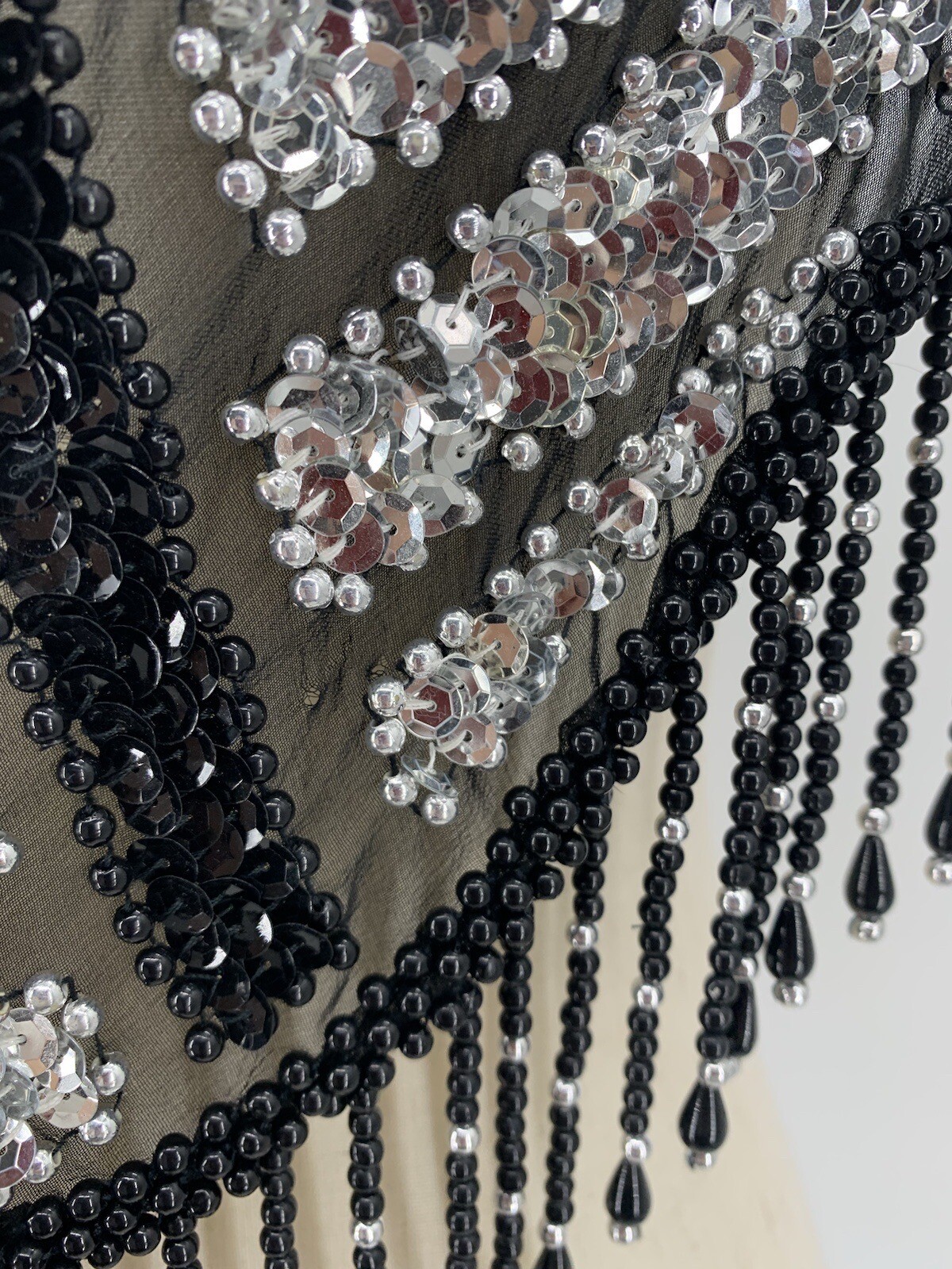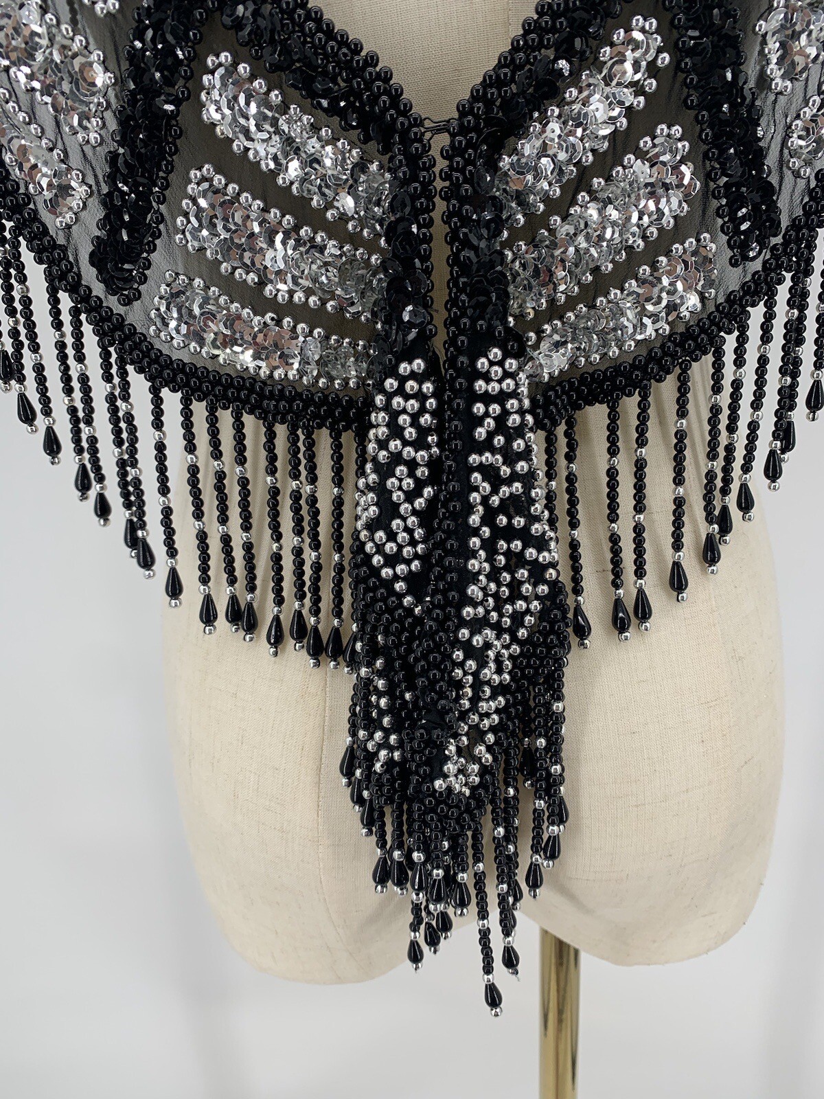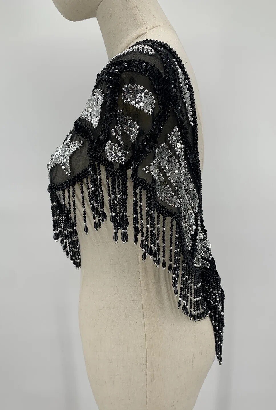 VTG Beaded Collar Shawl Sheer Lace Wrap Victorian Silver Black Metalcore