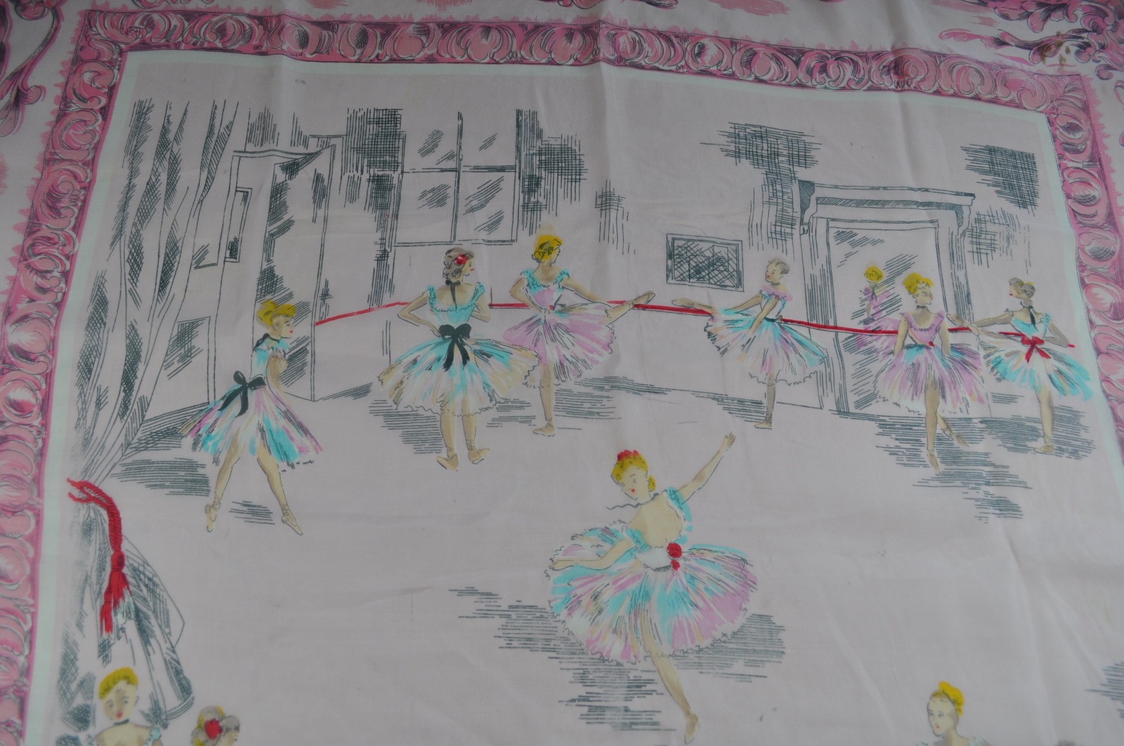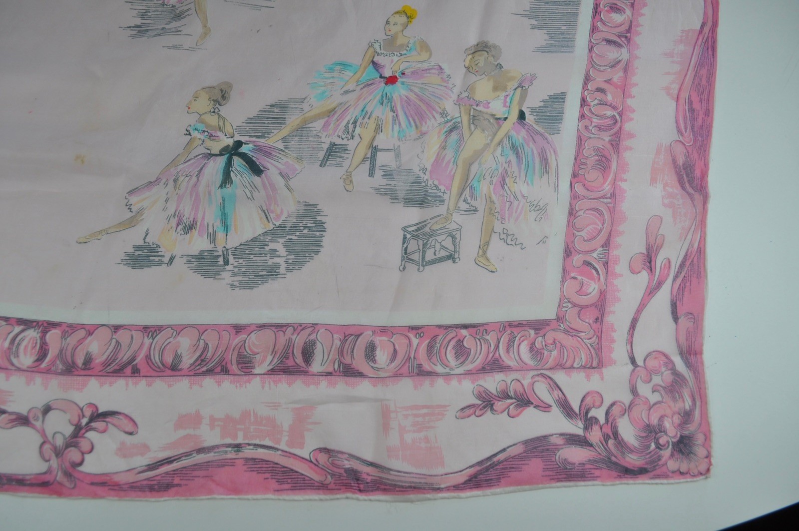 как выглядит Vintage Scarf Ballet Dancers Pink and Blue Unbranded As is фото
