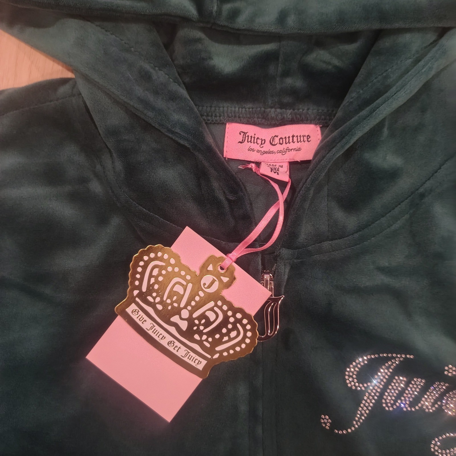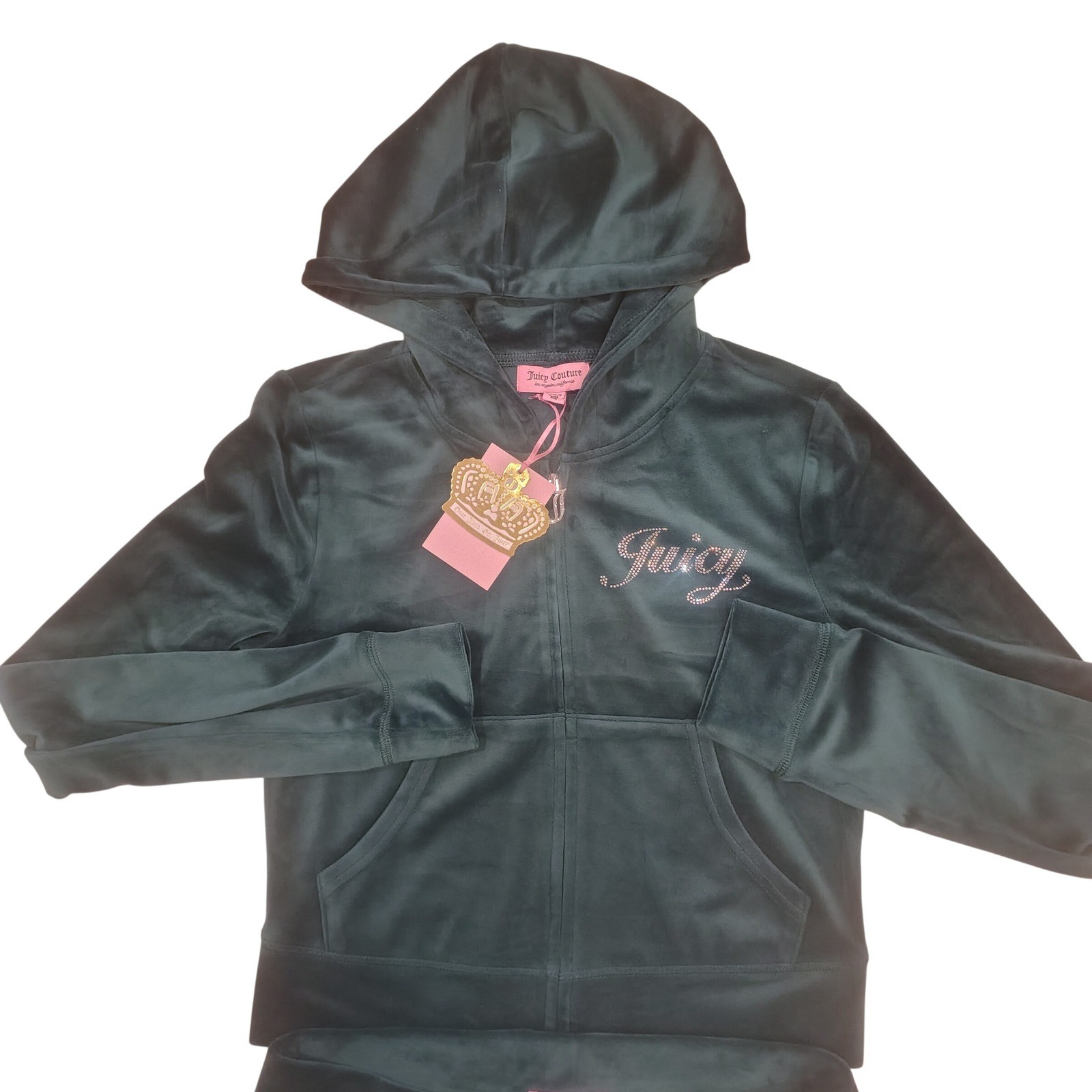 Juicy Couture Velour Tracksuit Set Dark Green Rhinestone Logo Hoodie Pants