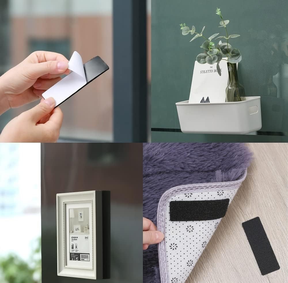 20 Sets Heavy Duty Hook Loop Adhesive Strips 1x4 Black Sticky Back Fastener