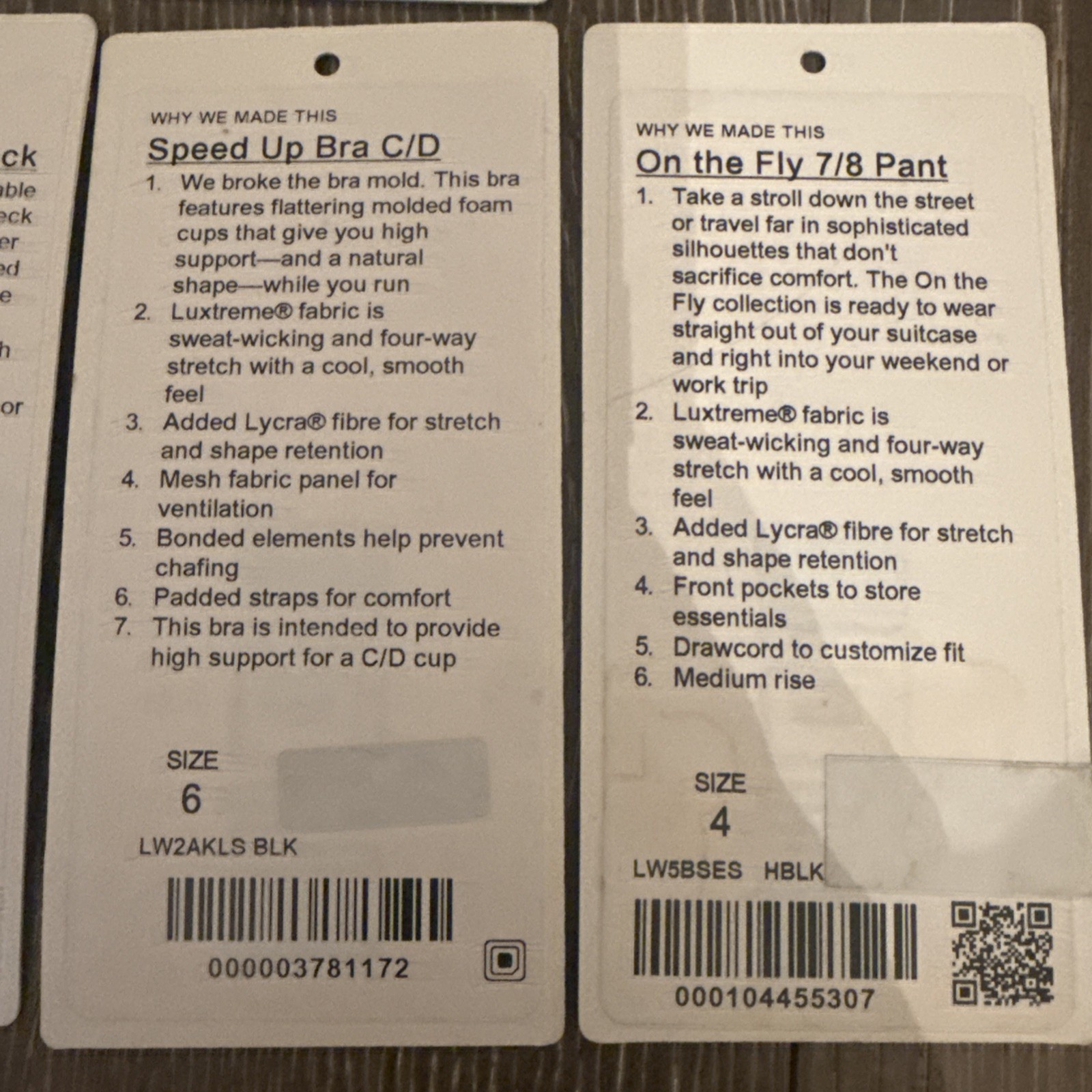Lululemon Store Tags Only JUST THE TAGS Small XS Lot Of 8 Sizes 4 6 Pants Bras