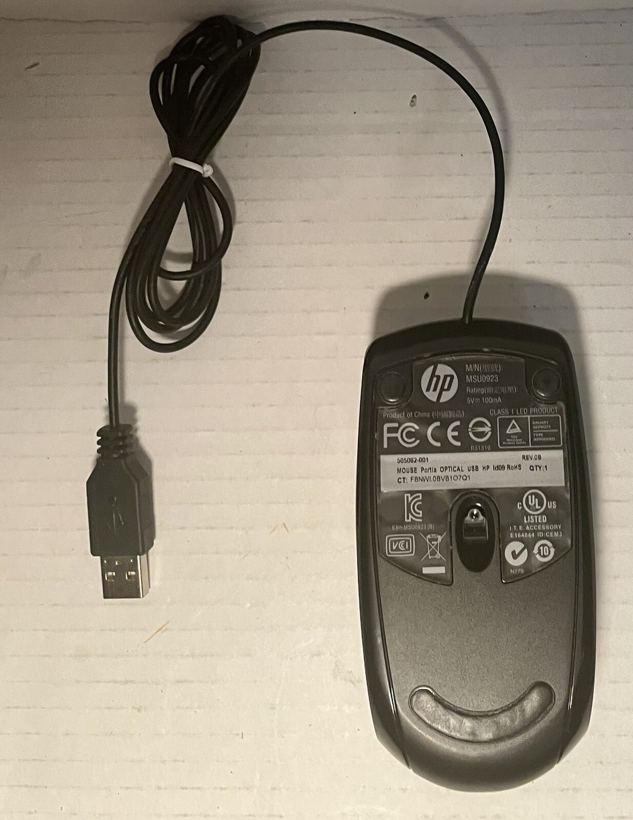 Genuine HP MSU0923 USB Wired Optical Mouse 697738-001 Black Tested Works Great