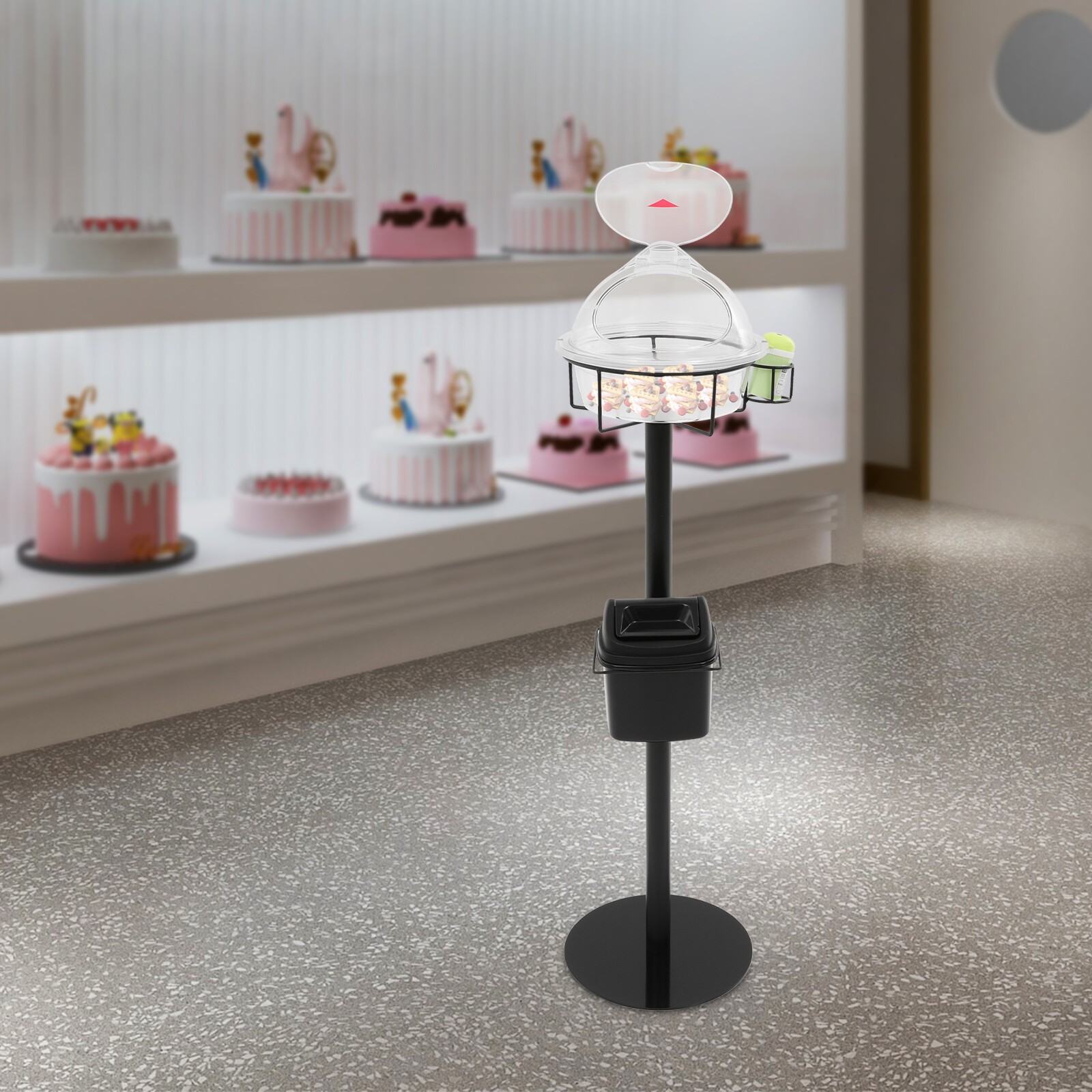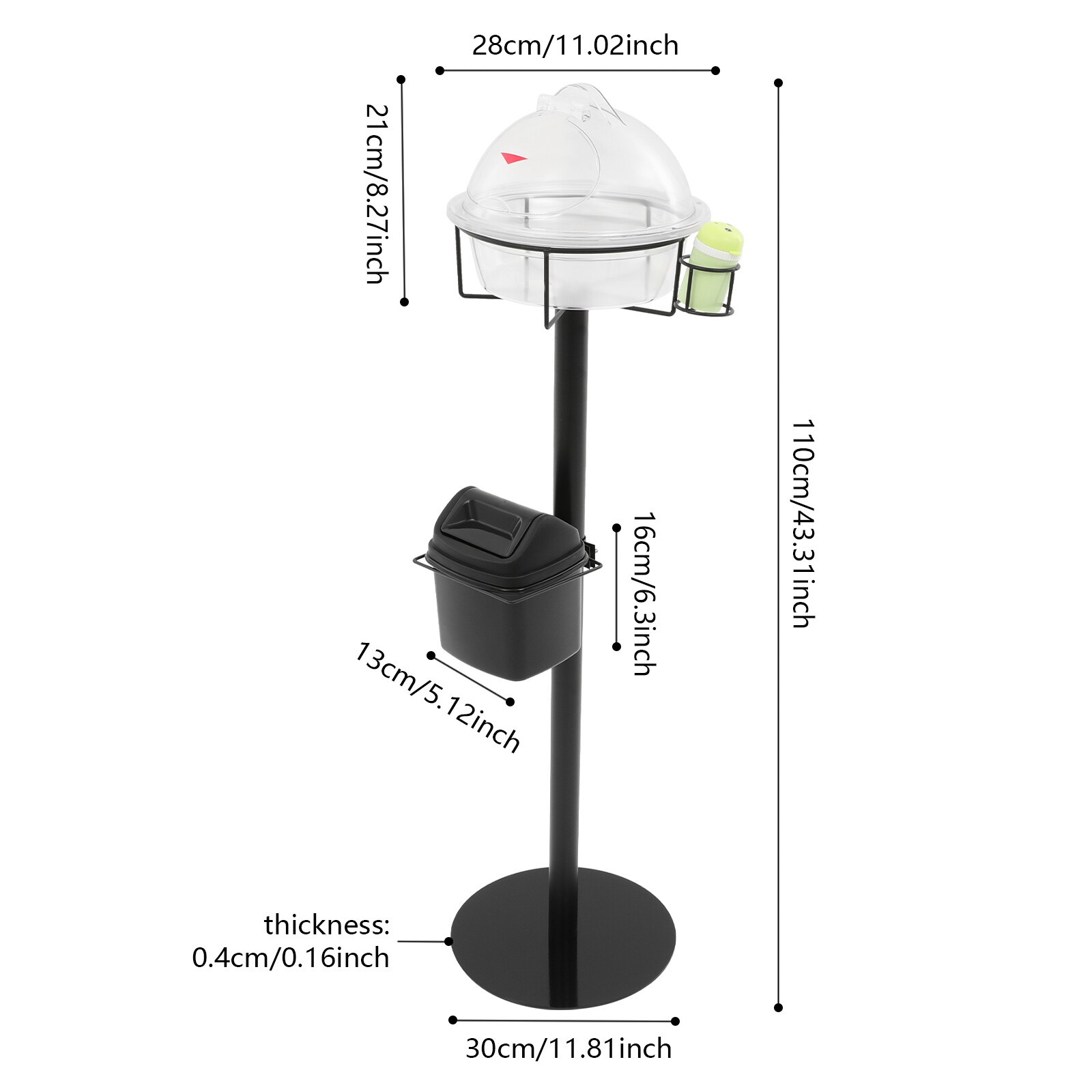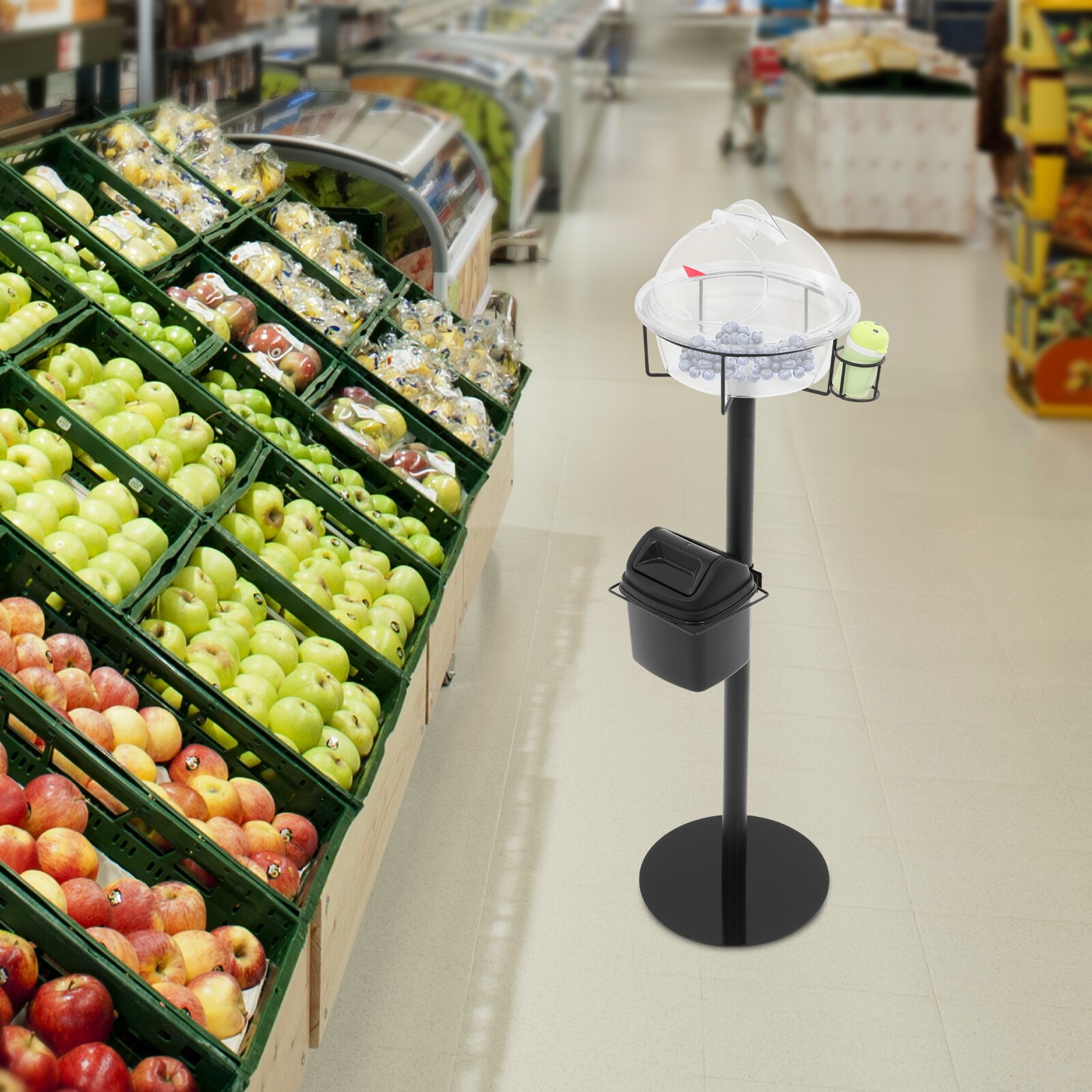 43.31in High Black Clear Food Service Sample Display Stand with Garbage Bin