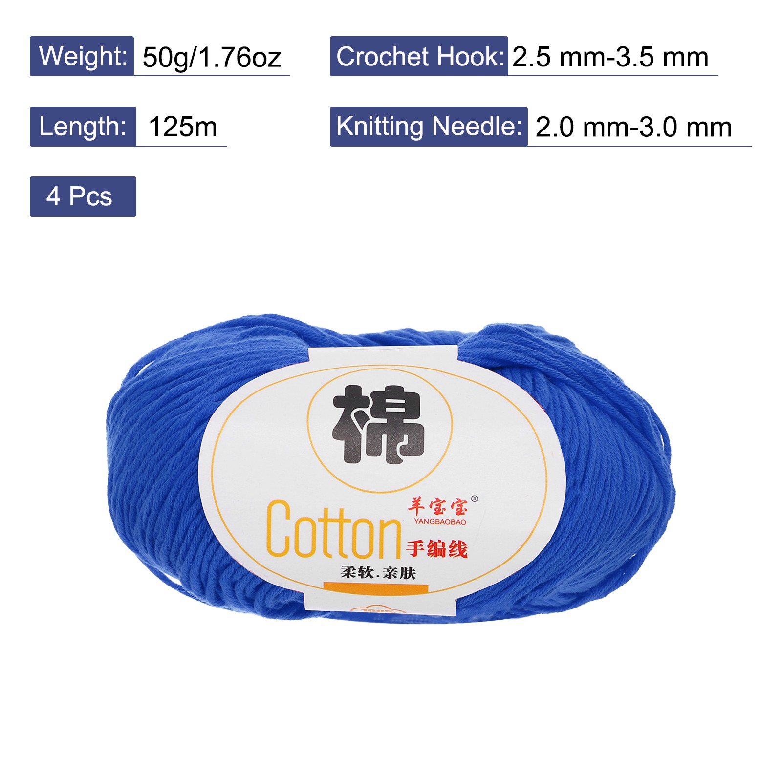 как выглядит Cotton Yarn, Soft Knitting Yarn 4 Packages of 200g/7.05oz/ Dark Blue фото
